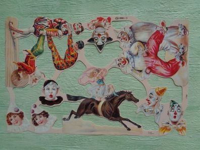 • mamelok England Sheets Scraps Oblaten Glanzbilderbogen MLP 1805 Clown Zirkus