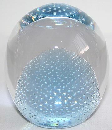 Glas Briefbeschwerer in Ei Form mit blauen Innenperlen aus den 1980er Jahren