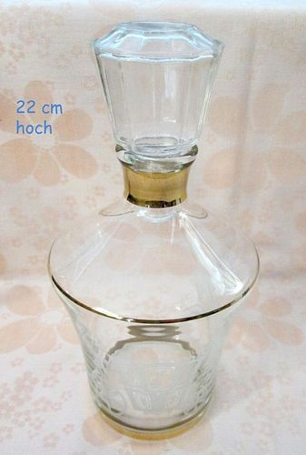 Glas Karaffe mit Golddekor Goldrand und Motiv Pferdekutsche ca. 0,5 l * gesamt 22 cm hoch keine Beschädigungen gefunden * * * * * Privatauktion ohne Garantiezusage, ohne Rücknahme, ohne Gewährleistung Versand nach Zahlungseingang * Brief & Päckchen = unversichert keine Haftung für Beschädigung V