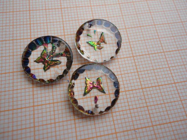 Glas-Nuggets / Anhänger : 3x Schmetterlinge Vintage Schmuck /18