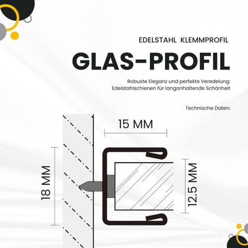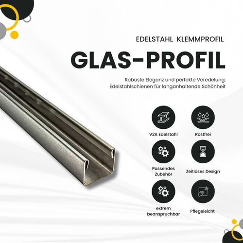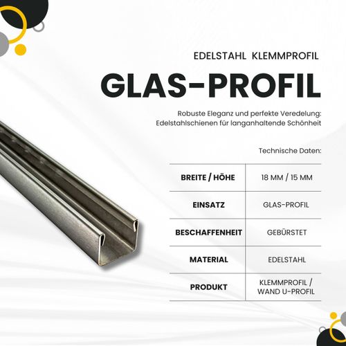 Glas-Profil Edelstahl Klemmprofil Wandprofil U-Profil V2A 2,5m 12,5mm gebürstet