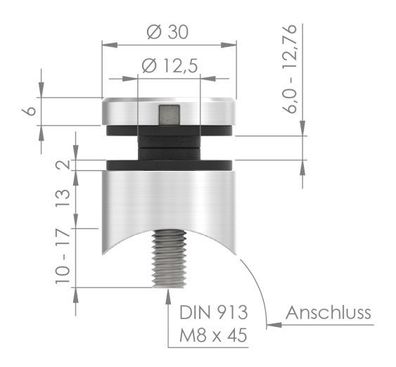 • Glas-Punkthalter Ø 30 mm Zinkdruckguss für Ø 42,4
