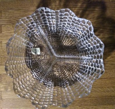 • alte Schale Gebäckschale aus Glas oval viergeteilt gezackt ca. 4,5 cm hoch