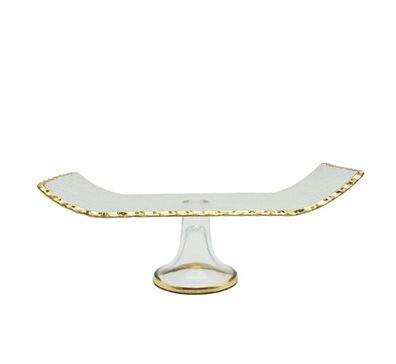 • Servierplatte mit Fuß & Goldrand, aus hochwertigem Glas - 32 x 14,5 x 13 cm