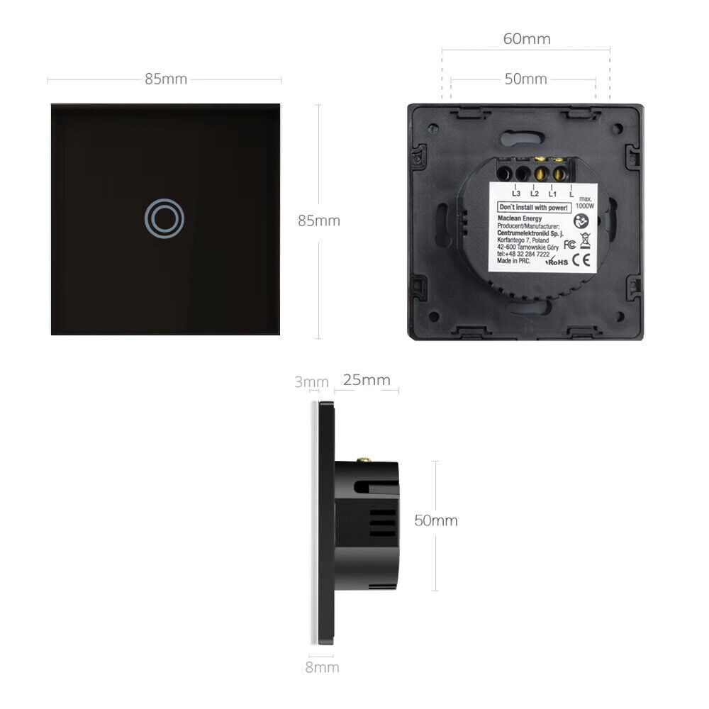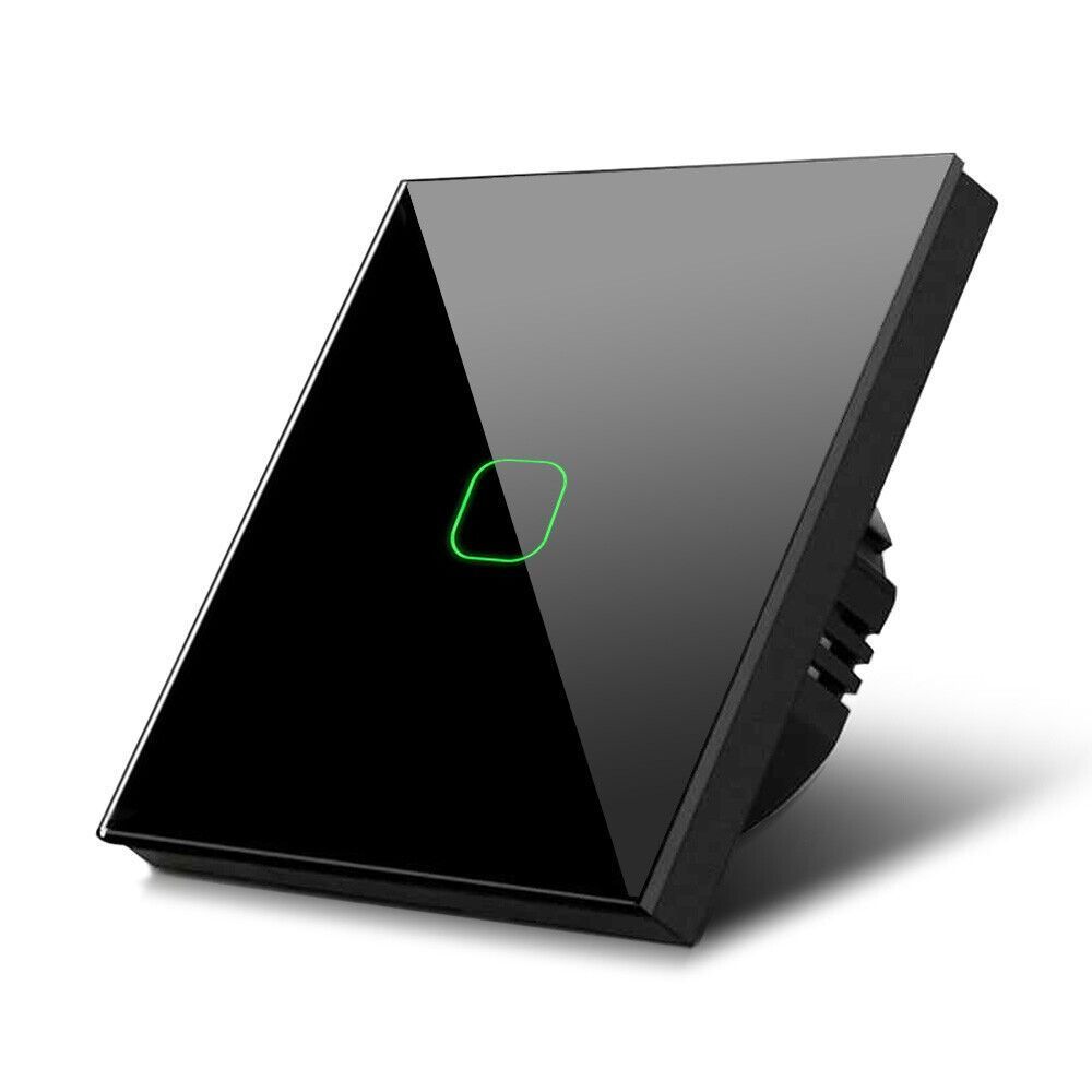 Glas Touch Lichtschalter Wandschalter Anzeigelicht 1-fach Schalter Schwarz Eckig