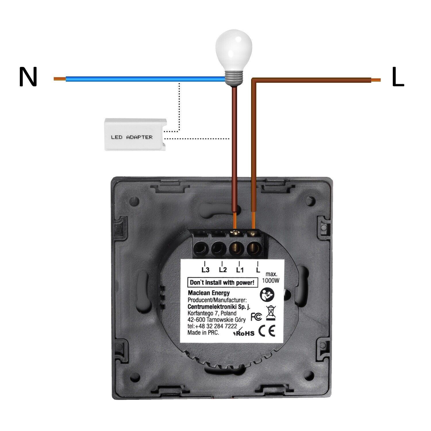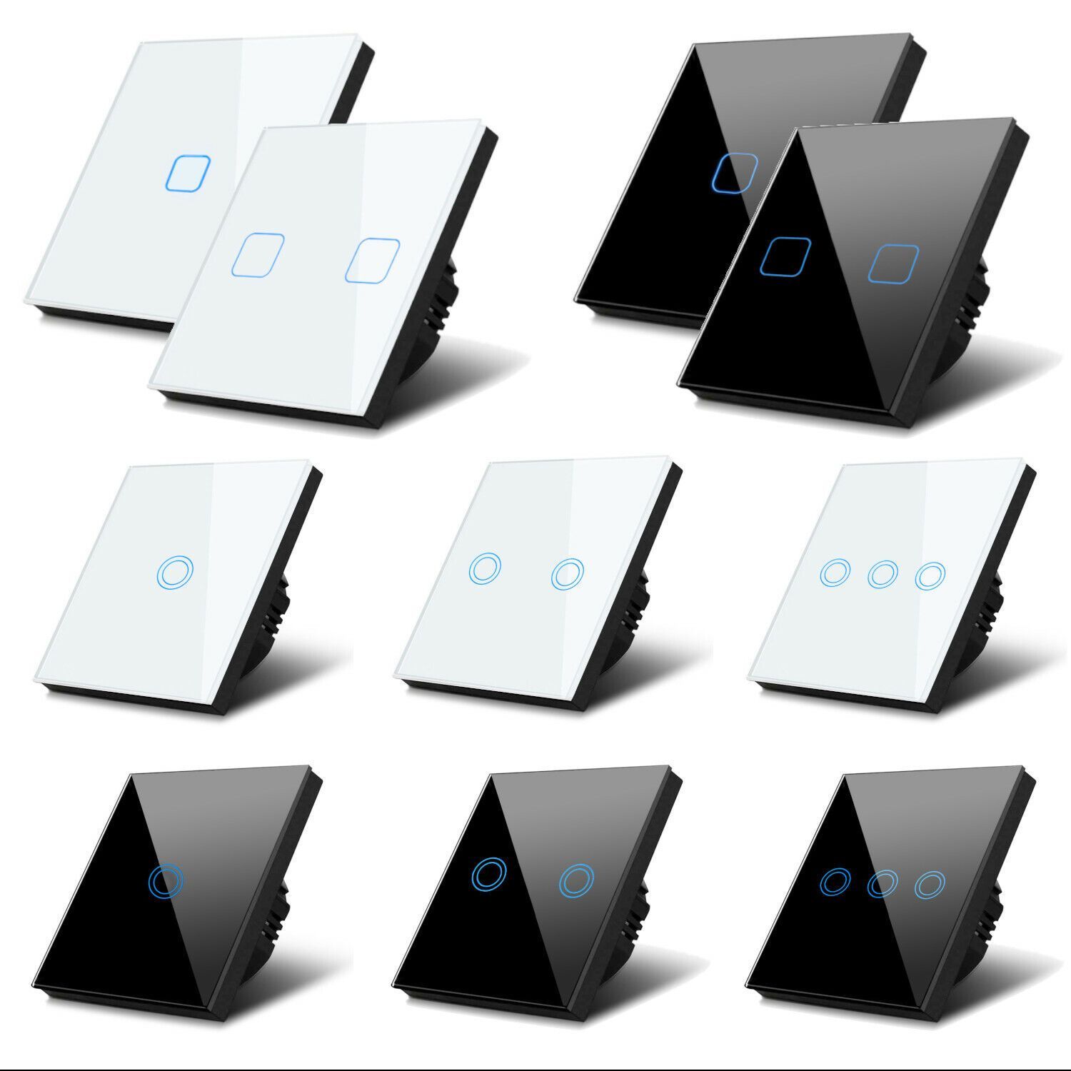 Glas Touch Lichtschalter Wandschalter Anzeigelicht 1-fach Schalter Weiß Eckig