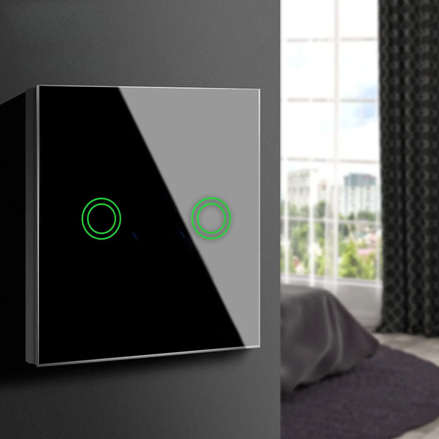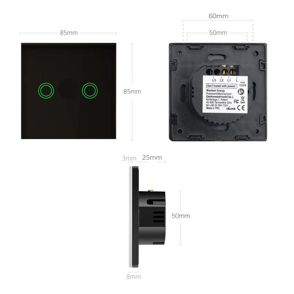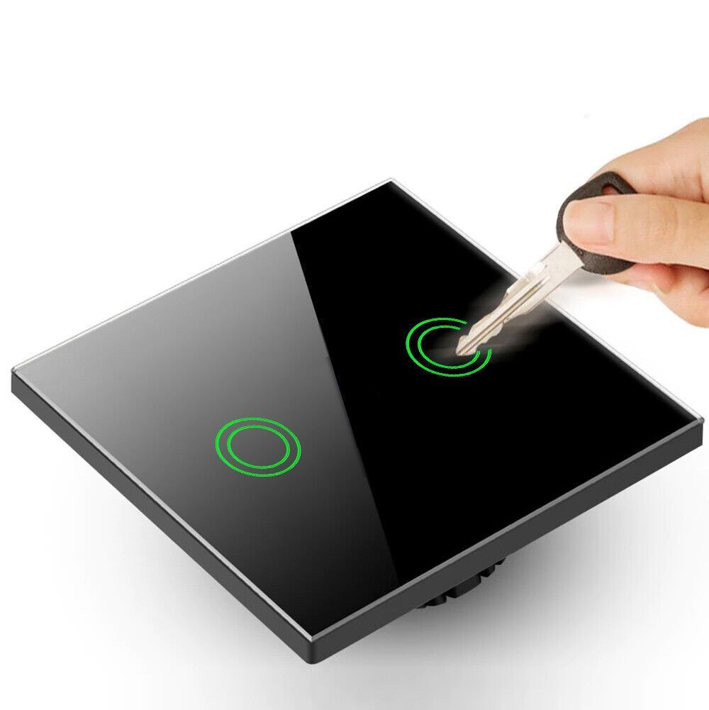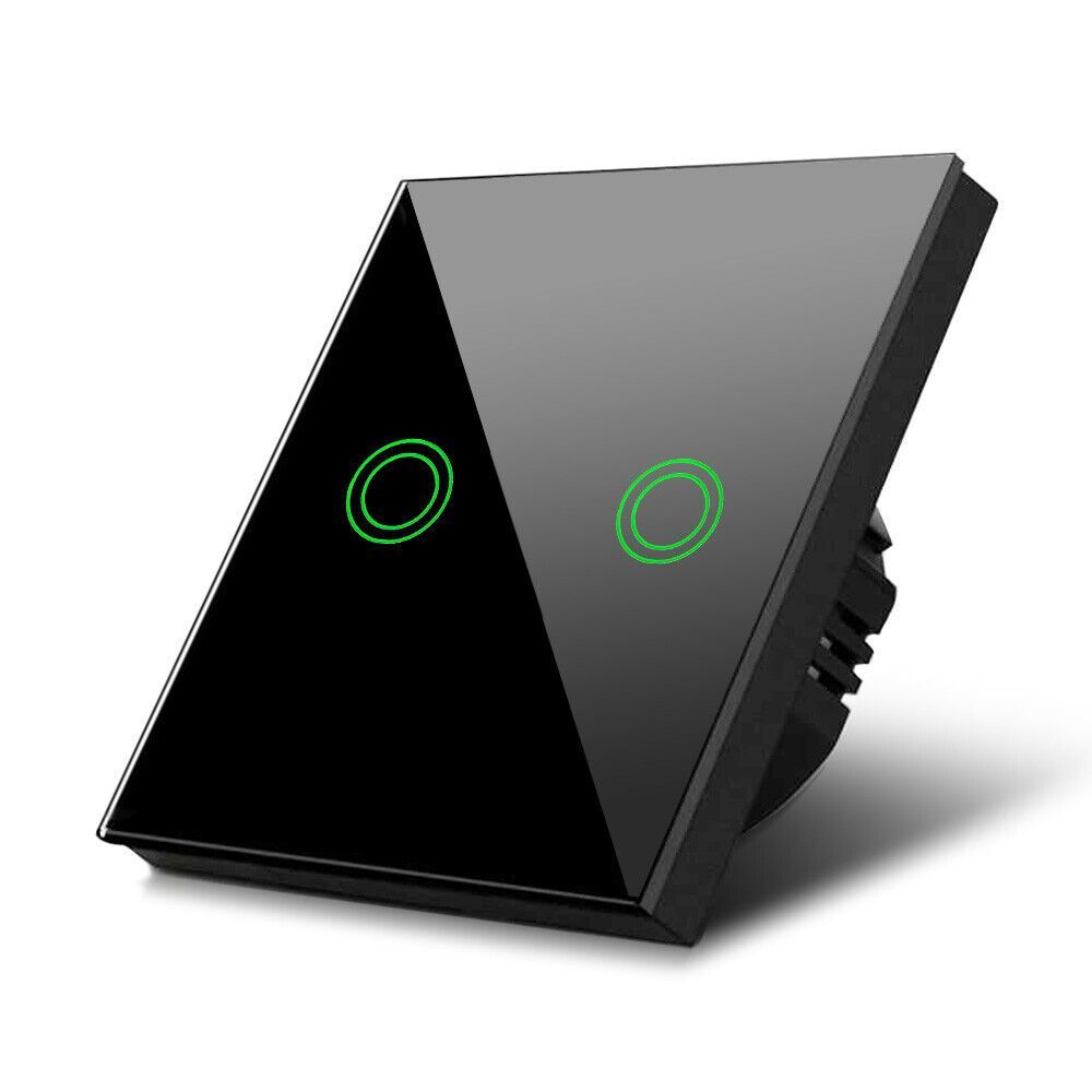 Glas Touch Lichtschalter Wandschalter Anzeigelicht 2-fach Schalter Schwarz Rund