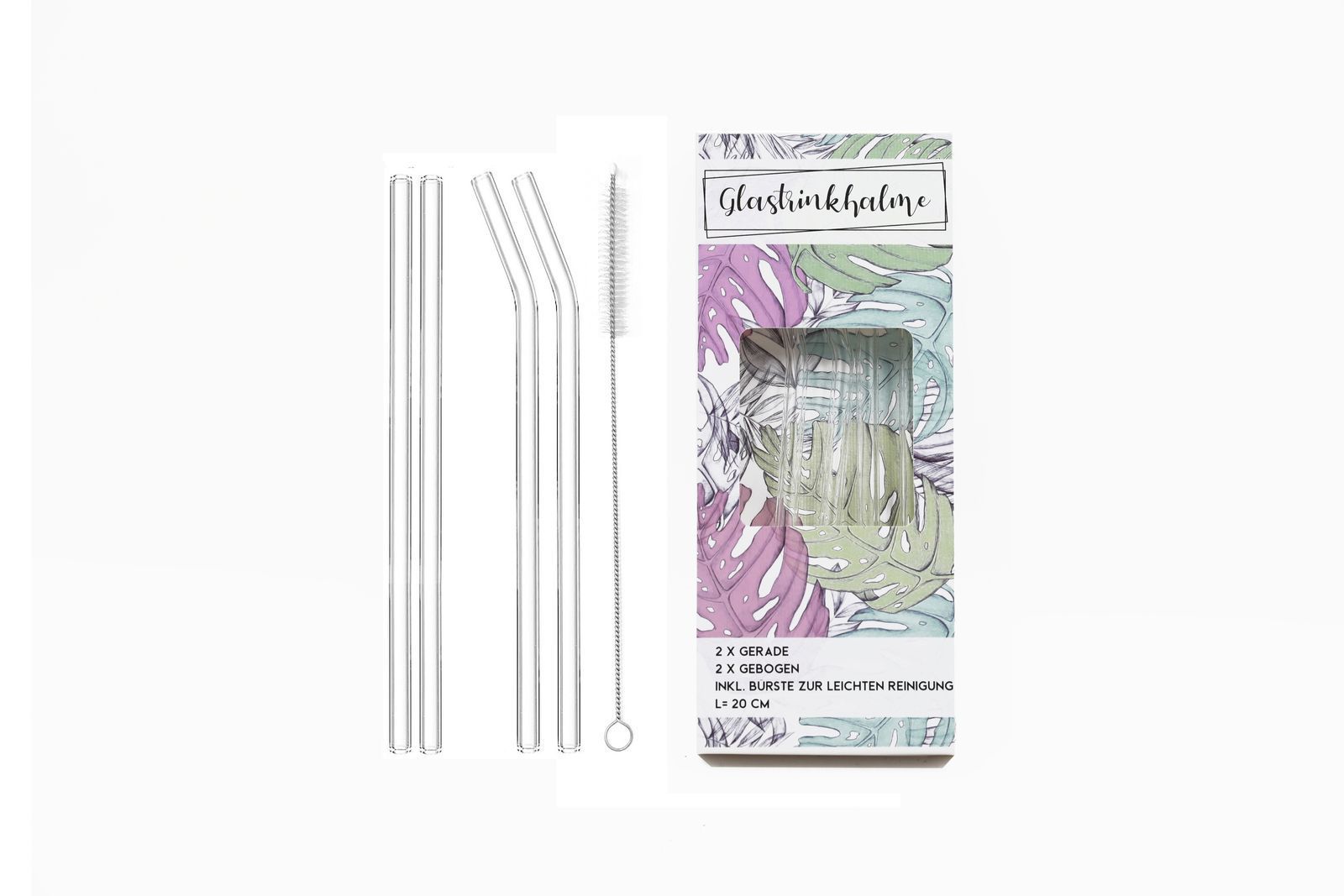 Glas-Trinkhalme 20cm mit Reinigungsbürste 5-tlg Mehrweg Trinkröhrchen Strohhalm