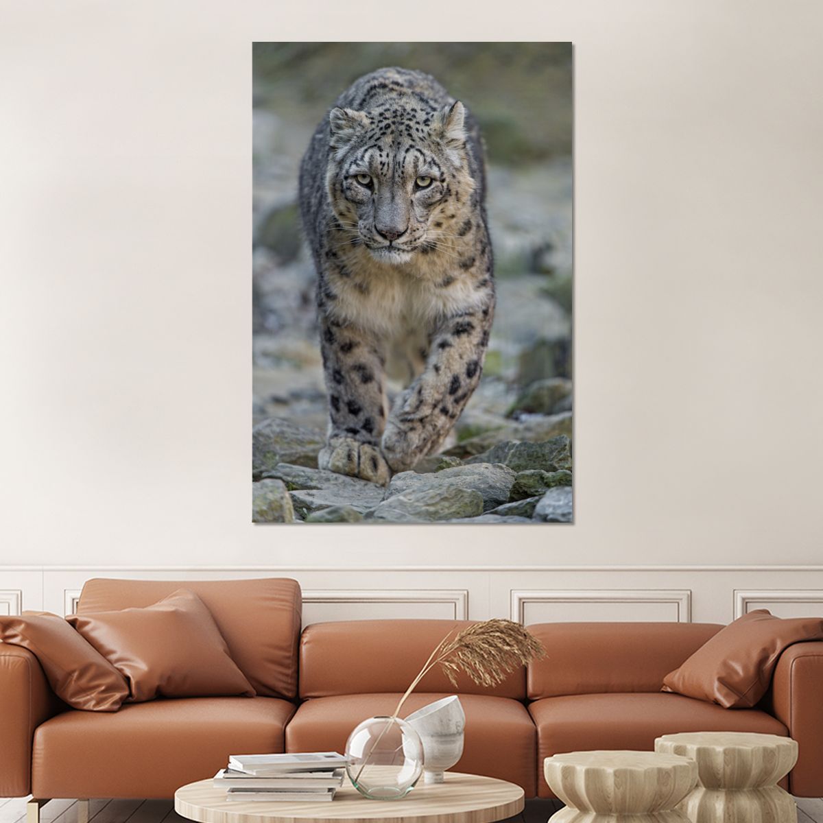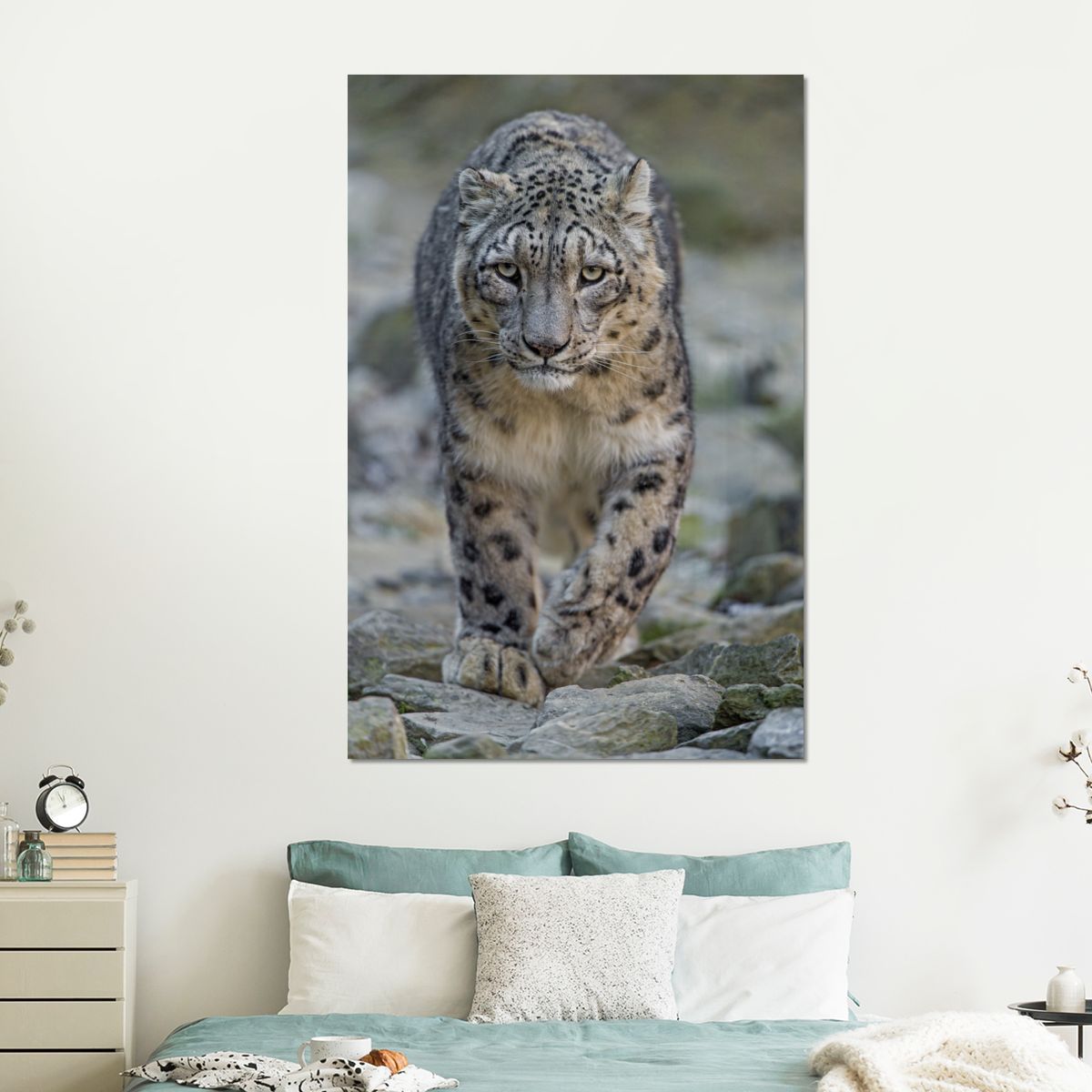 Glasbild - 100x150 cm - Wandkunst - Leopard - Steine - Spaziergang