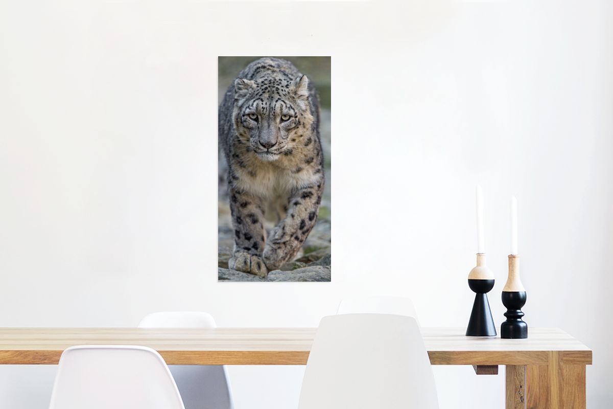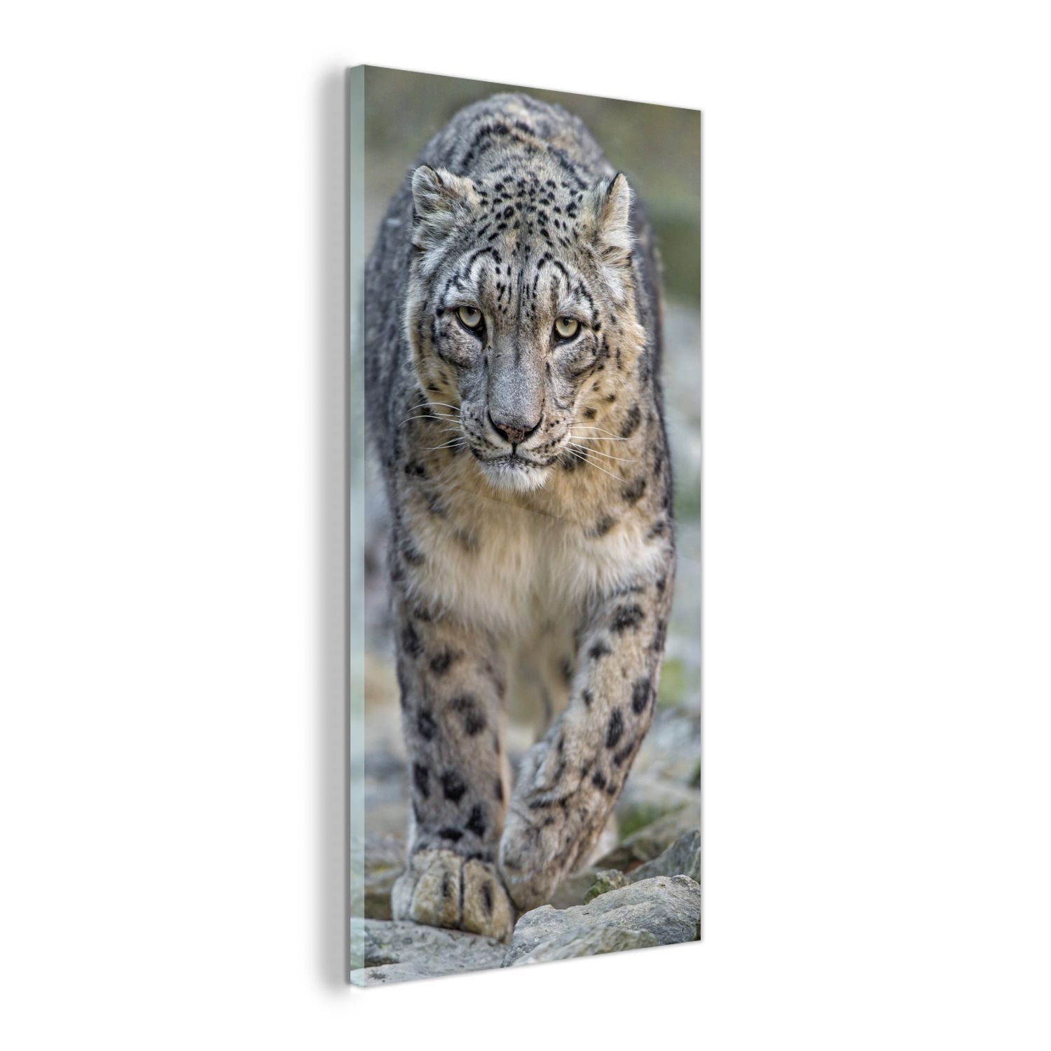 Glasbild - 40x80 cm - Wandkunst - Leopard - Steine - Spaziergang