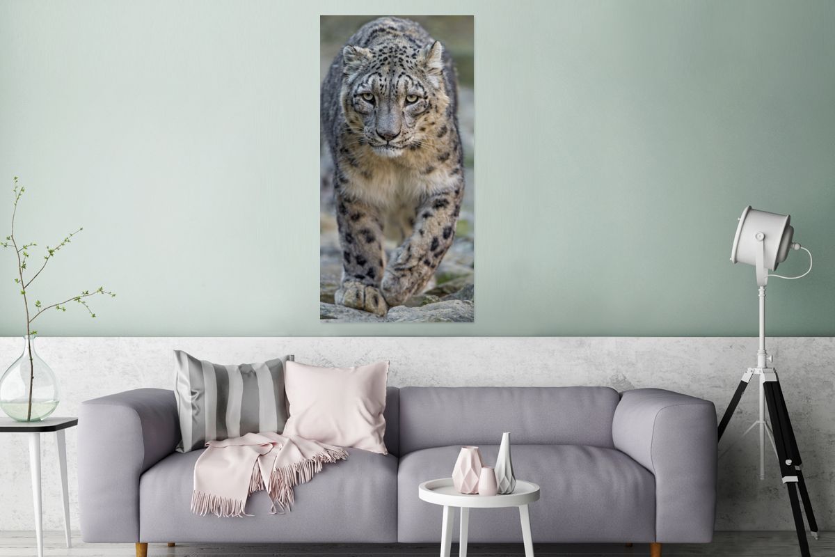 Glasbild - 80x160 cm - Wandkunst - Leopard - Steine - Spaziergang