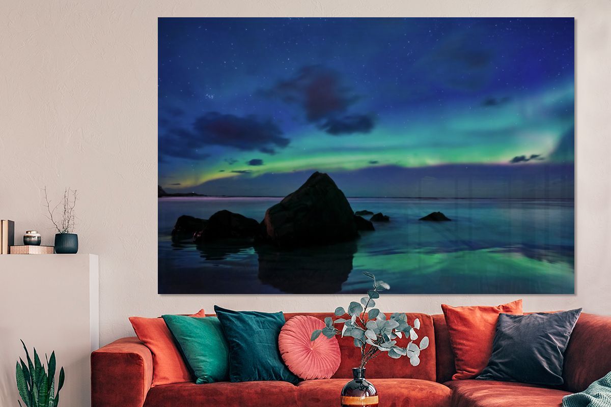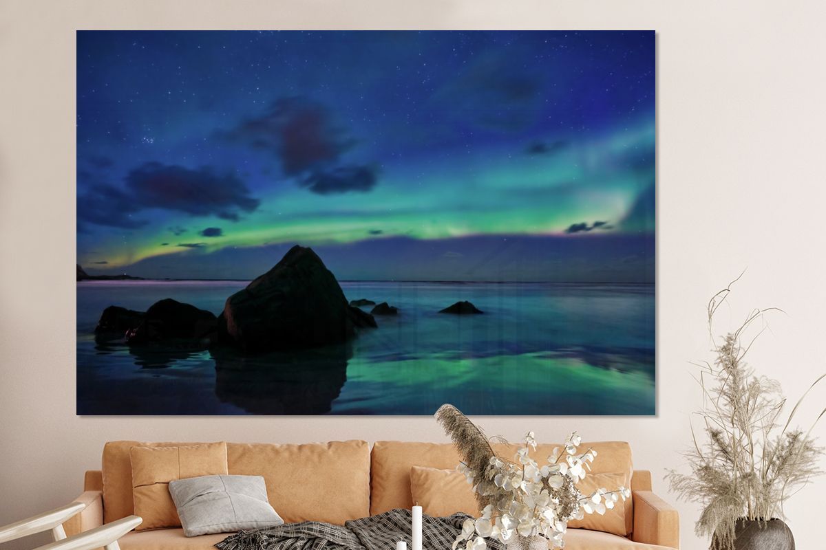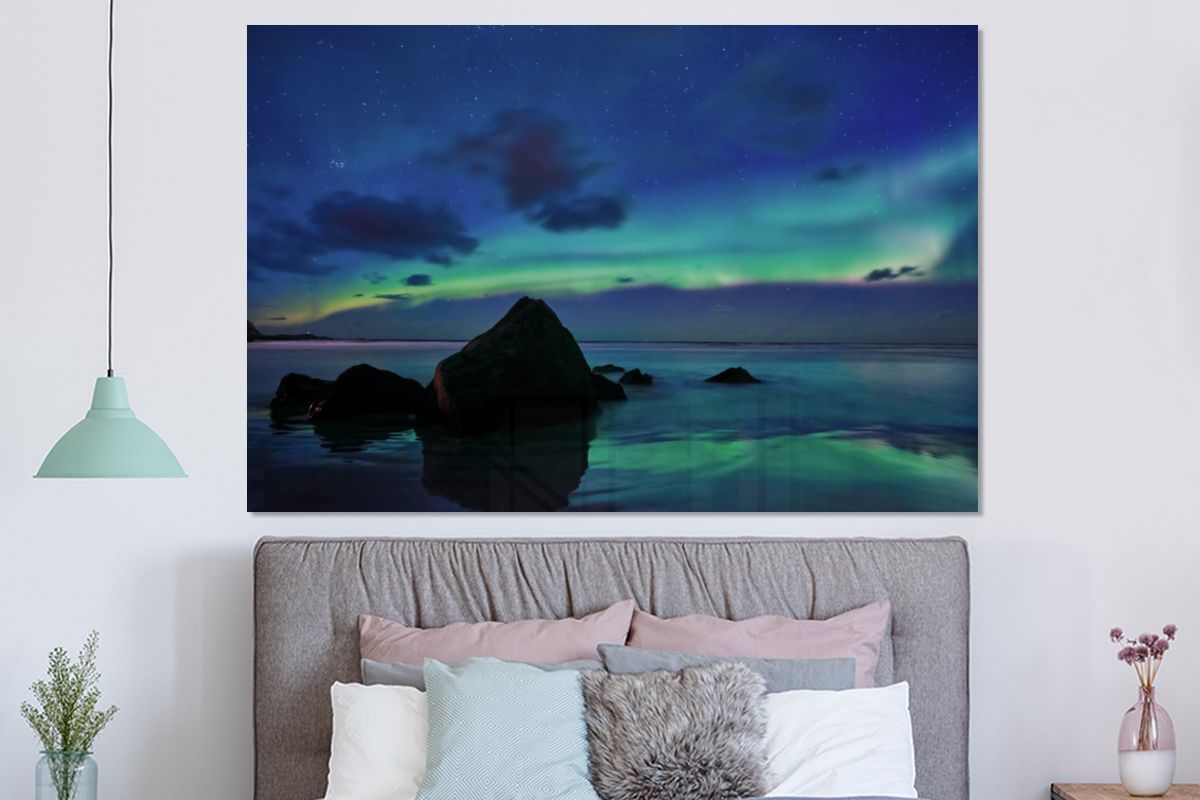 Glasbild Glasfoto Wandbild 150x100 cm Himmel - Landschaft - Polarlicht