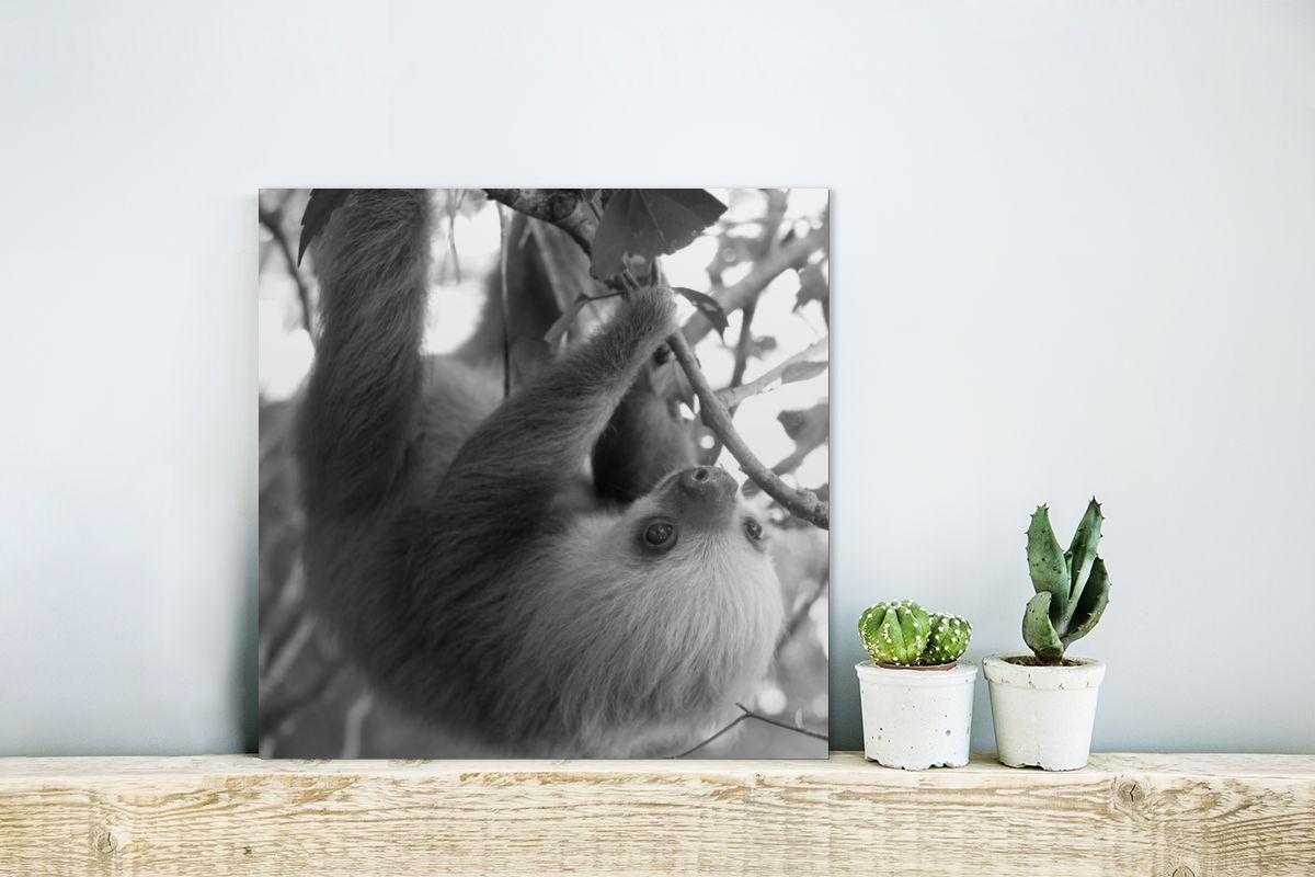 Glasbilder - 20x20 cm - Baby-Faultier im Regenwald von Costa Rica in schwarz und weiß