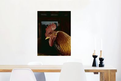 • Glasbilder - 60x80 cm - Goldbrauner Hahn in einer Scheune (Gr. 60x80 cm)