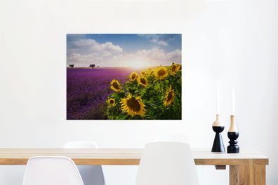 • Glasbilder - 80x60 cm - Sonnenblumen neben einem Lavendelfeld (Gr. 80x60 cm)