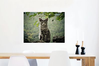 • Glasbilder - 80x60 cm - Katze - Stein - Wald (Gr. 80x60 cm)