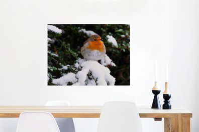 • Glasbilder - 80x60 cm - Rotkehlchen - Baum - Schnee (Gr. 80x60 cm)