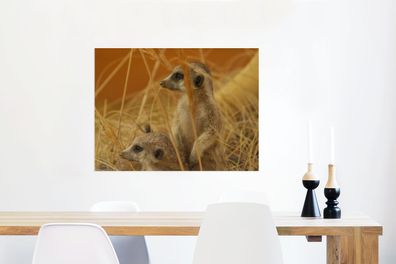 • Glasbilder - 80x60 cm - Gras - Erdmännchen - Tiere (Gr. 80x60 cm)