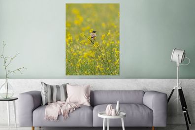 • Glasbilder - 90x120 cm - Vogel - Blumen - Gelb (Gr. 90x120 cm)