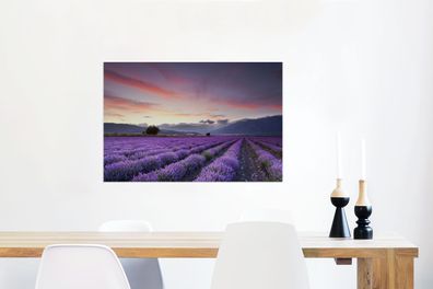 • Glasbilder - 90x60 cm - Sonnenuntergang über Lavendel (Gr. 90x60 cm)