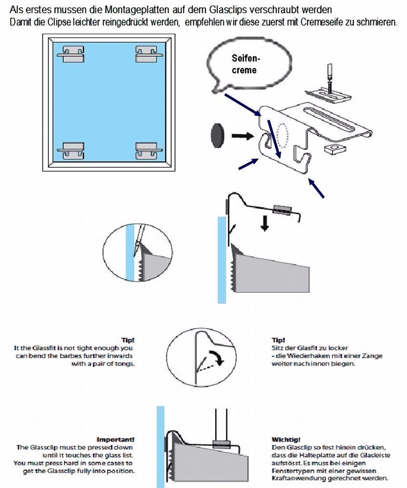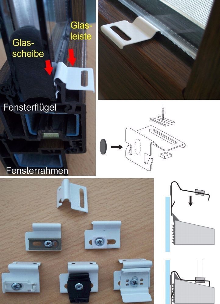 Glasclip für Plissee Jalousie Rollo Faltstores Faltrollo Montage ohne zu bohren