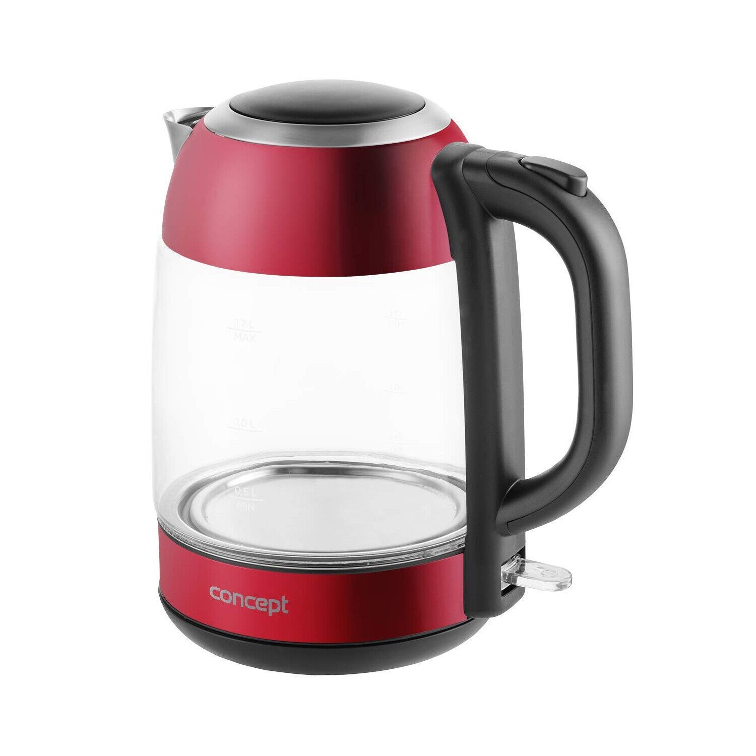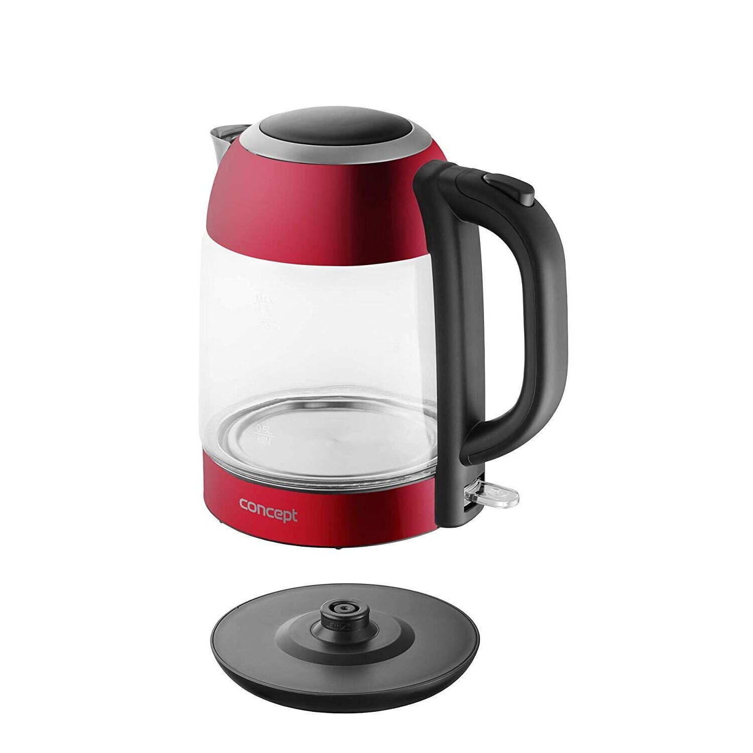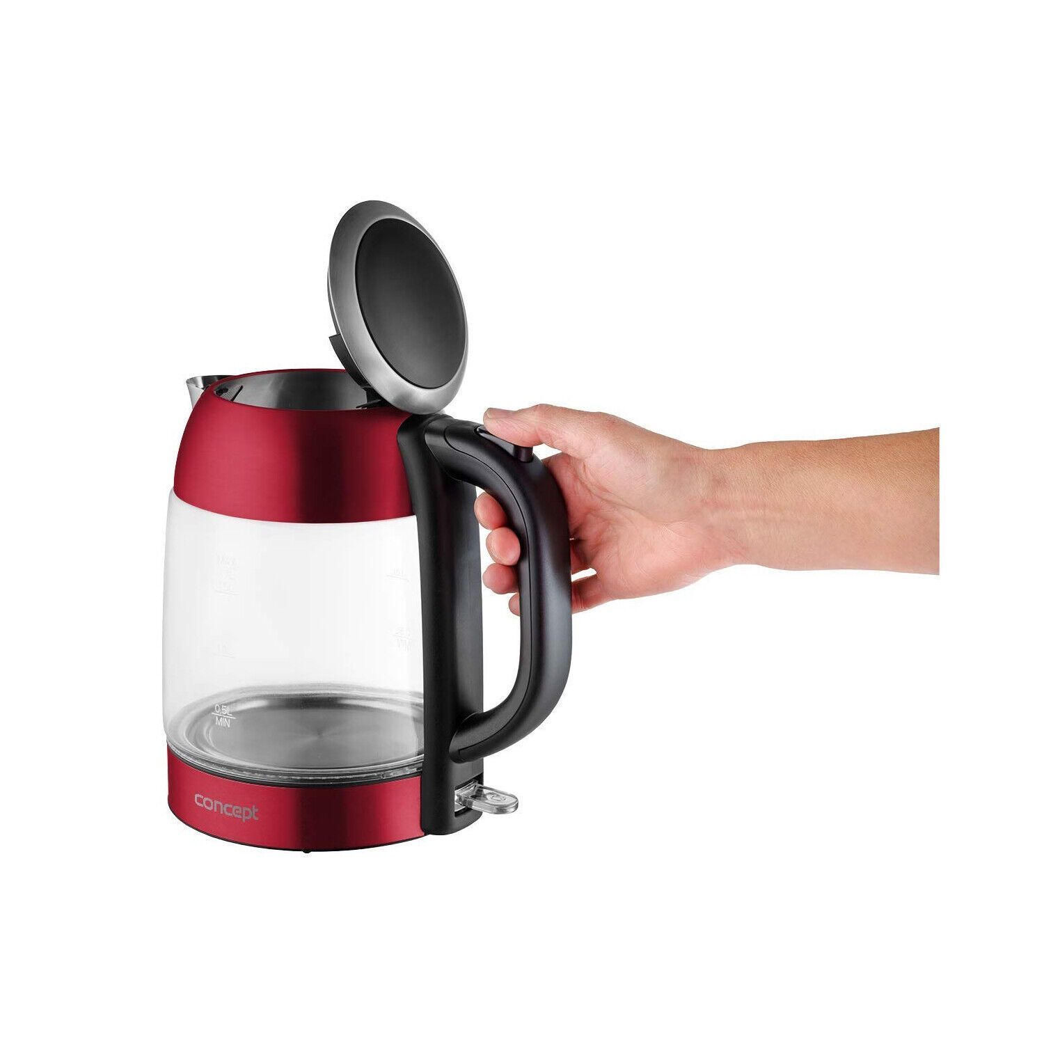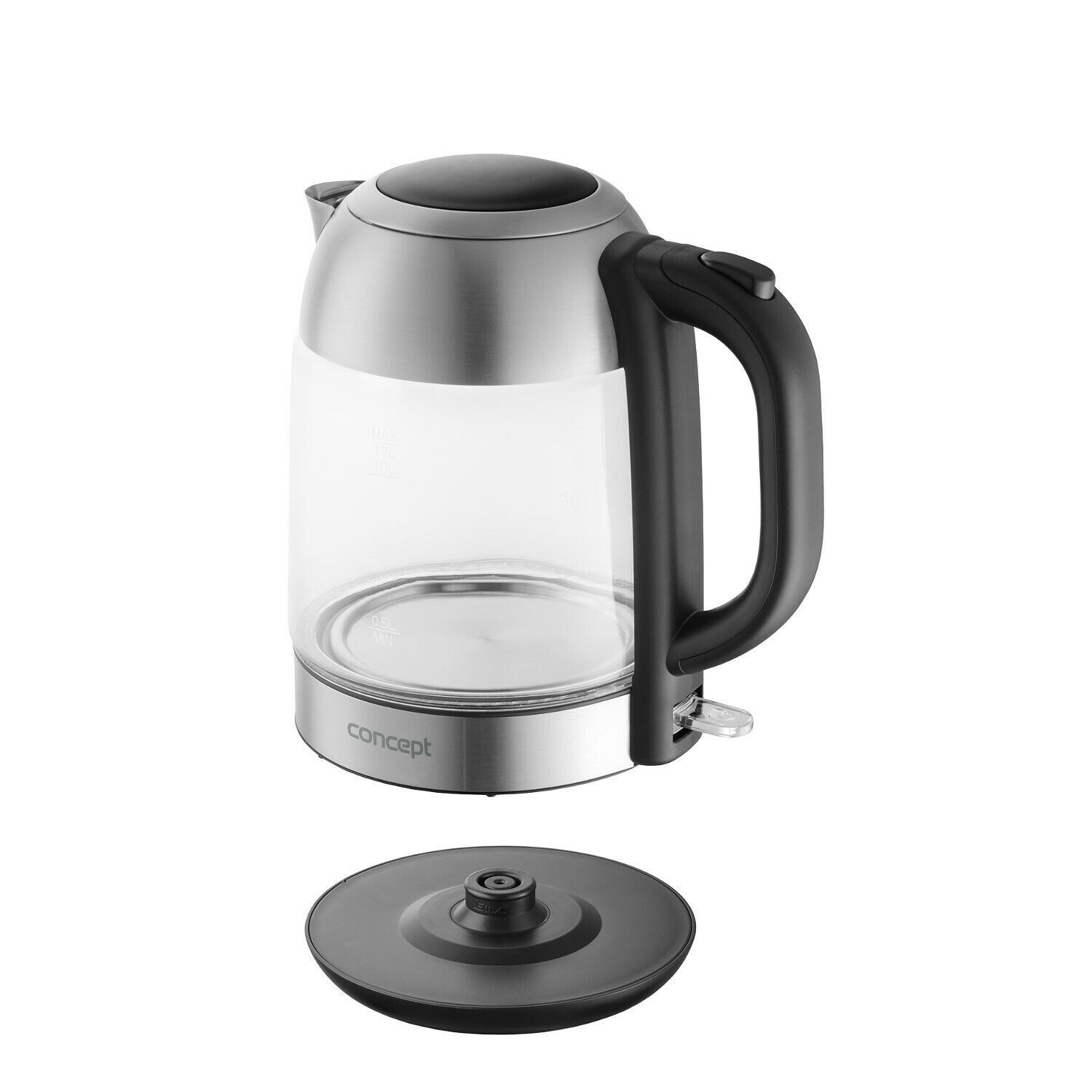 Glas Wasserkocher Concept Edelstahl 1,7 Liter Artikelnummer:66794,66795 - Anzeige für klare Wasserverteilung - LEDs, die während des Betriebs rot leuchten - Hergestellt aus hochwertigem gehärtetem und ungiftigem Borosilikatglas - Beständig gegen hohe Temperaturen und Verfärbungen - Drehbasis - Dreif