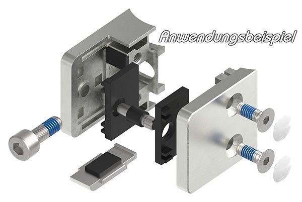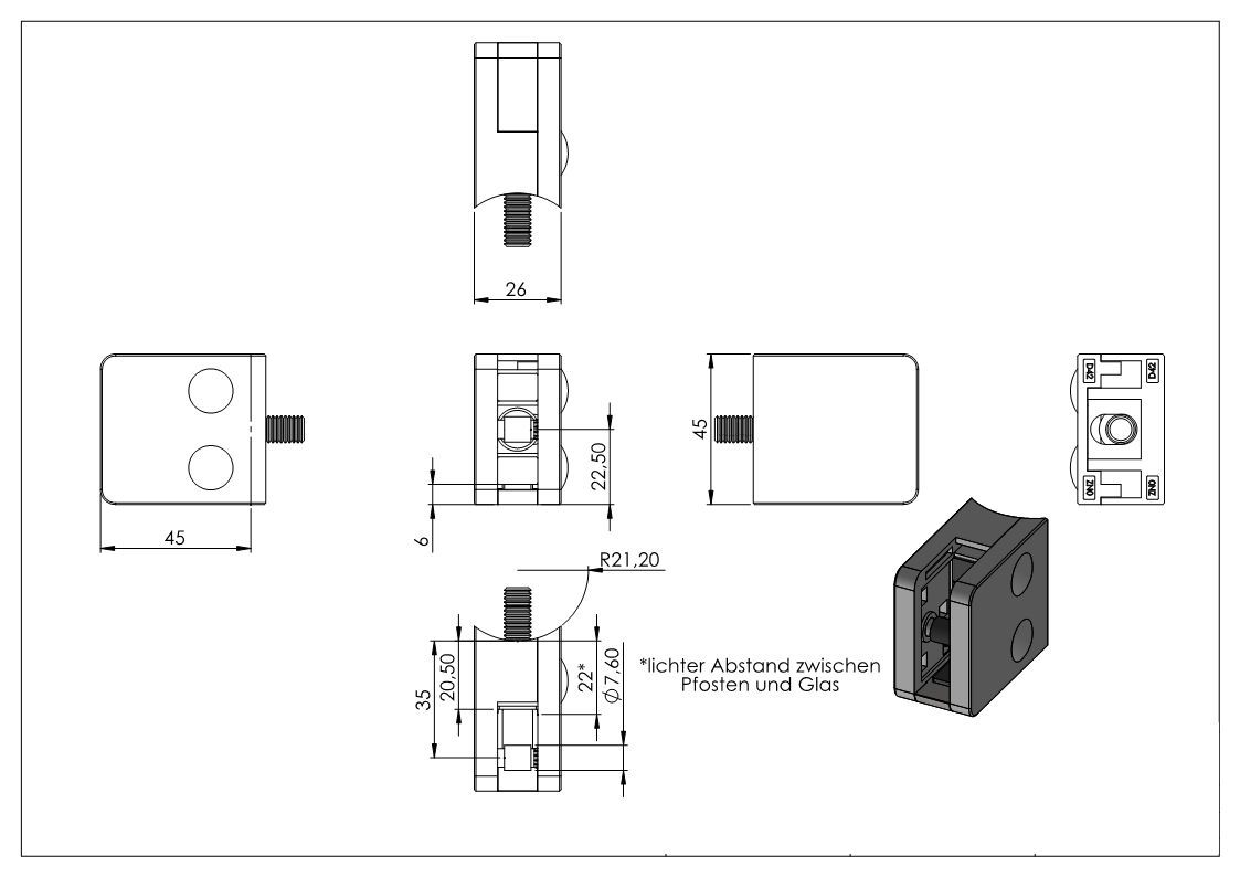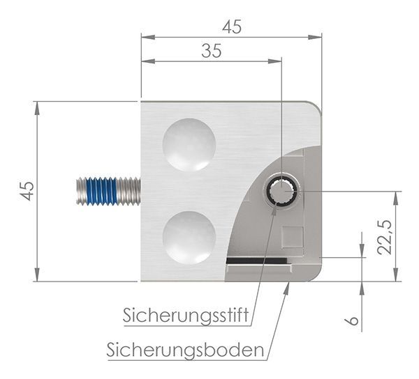 Glasklemme 45x45x26 mm AbZ für Anschluss Ø 42,4 mm Edelstahleffekt
