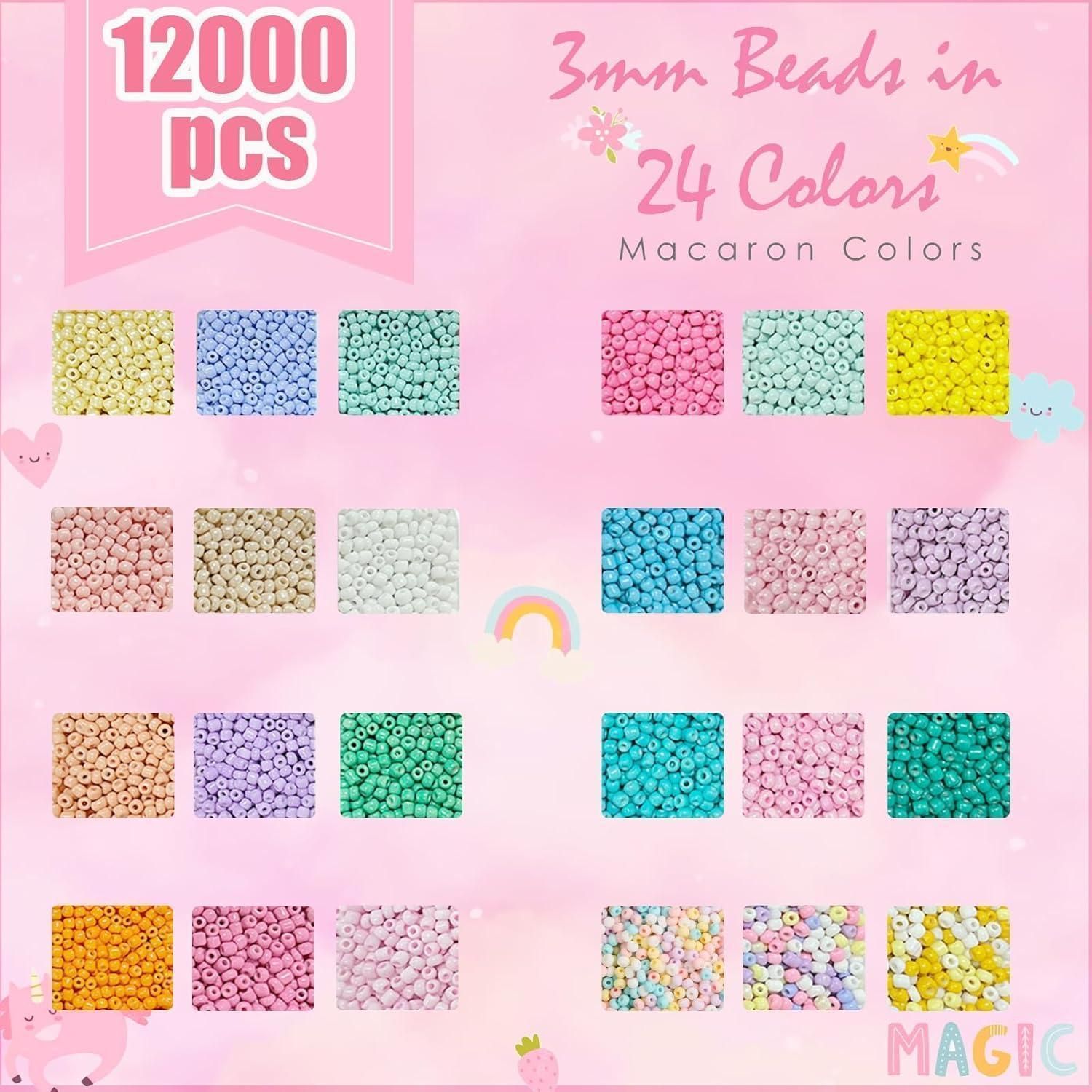 Glasperlen Set 18000+ Stück Pastell Armbänder Basteln Mädchen 3mm Seed Beads
