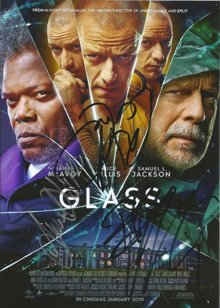 Glass Cast Autogramm Bruce Willis Samuel L. Jackson James McAvoy
