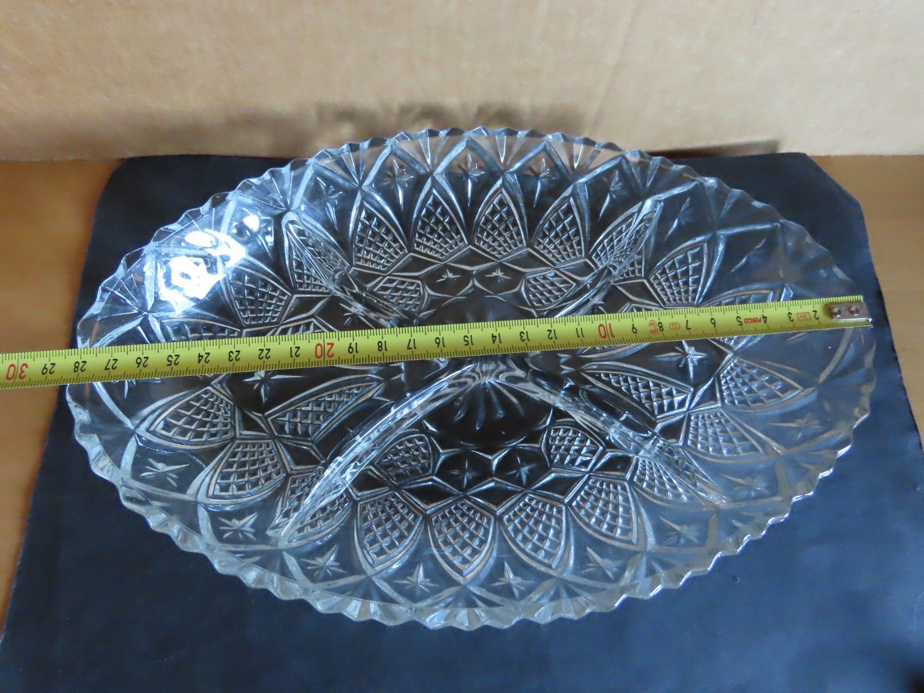 Maße: ca. 4 cm hoch x ca. 28,5 cm x ca. 19 cm --- Material: Glas ist leicht verschmutzt verstaubt, hat feine Kratzer