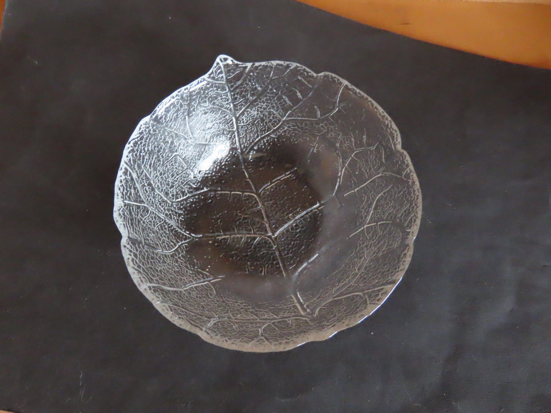 Glasschale kleine Dessertschale Relief Blattform ca.5 cm hoch/ Arcoroc