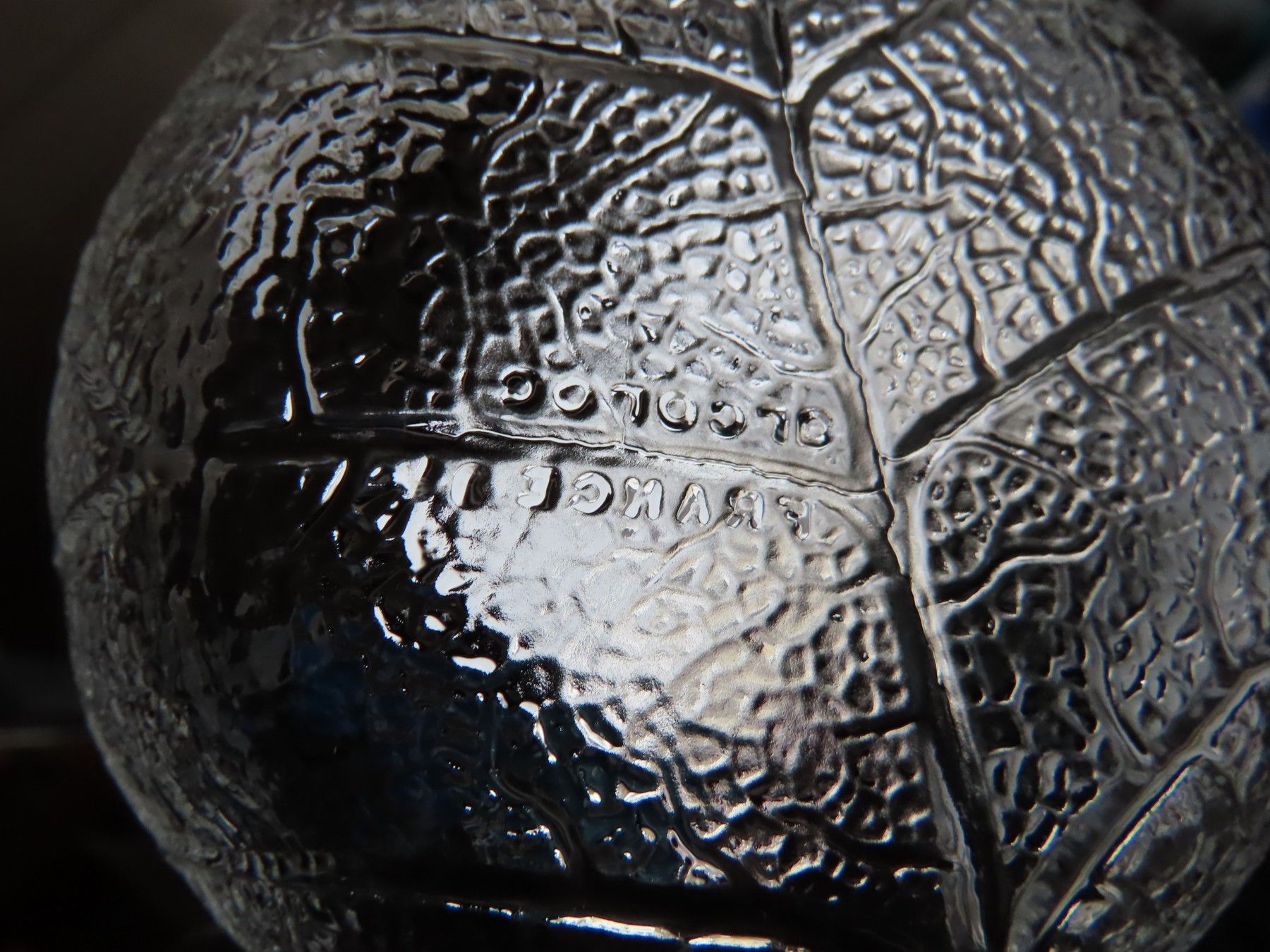 Maße: ca. 5 cm hoch und hat einen Durchmesser von ca. 12,5 cm ----immer die breiteste Stelle gemessen der Boden hat einen Durchmesser von ca. 6,5 cm Material: Glas ist leicht verschmutzt und hat feine Kratzer