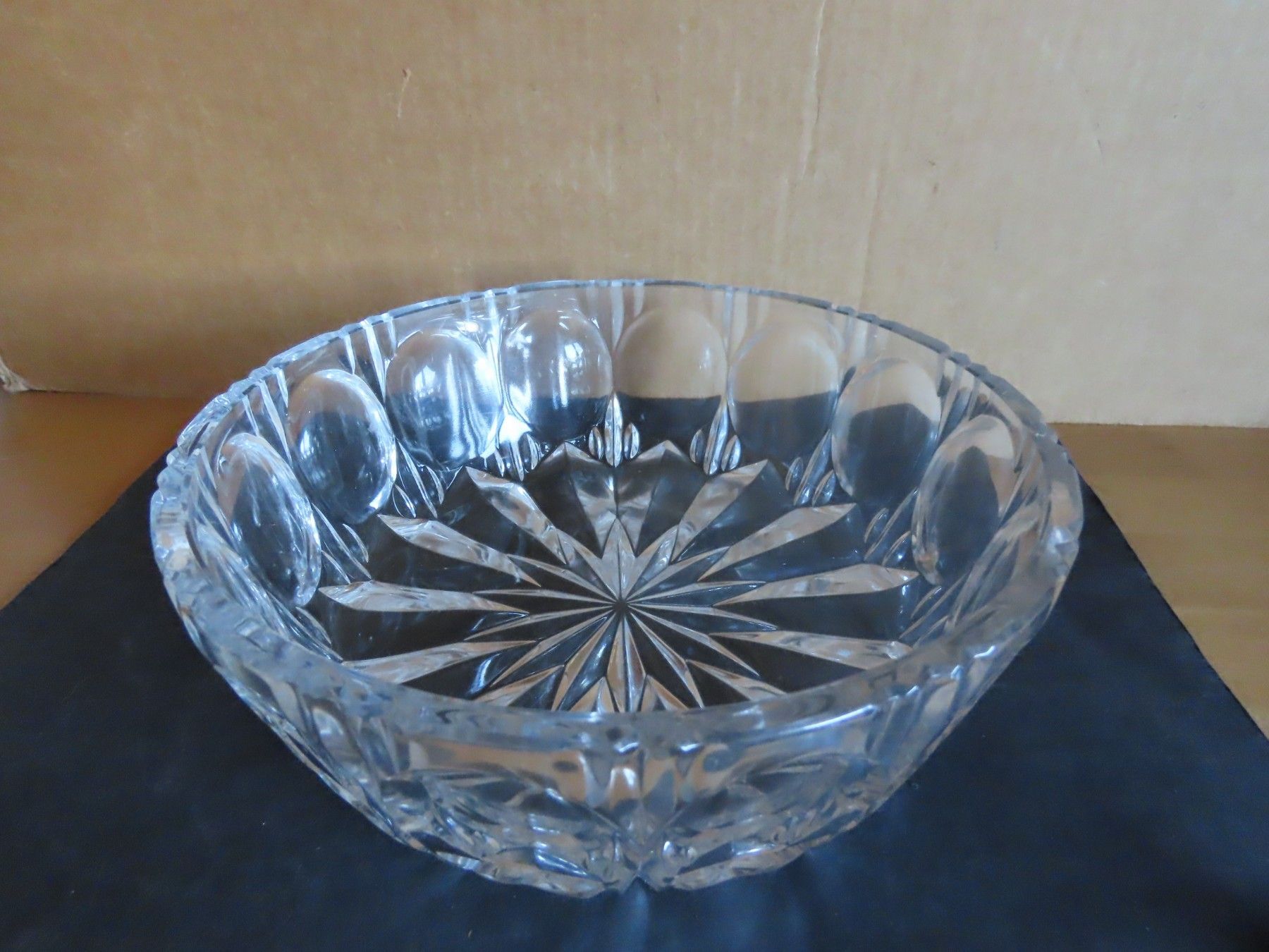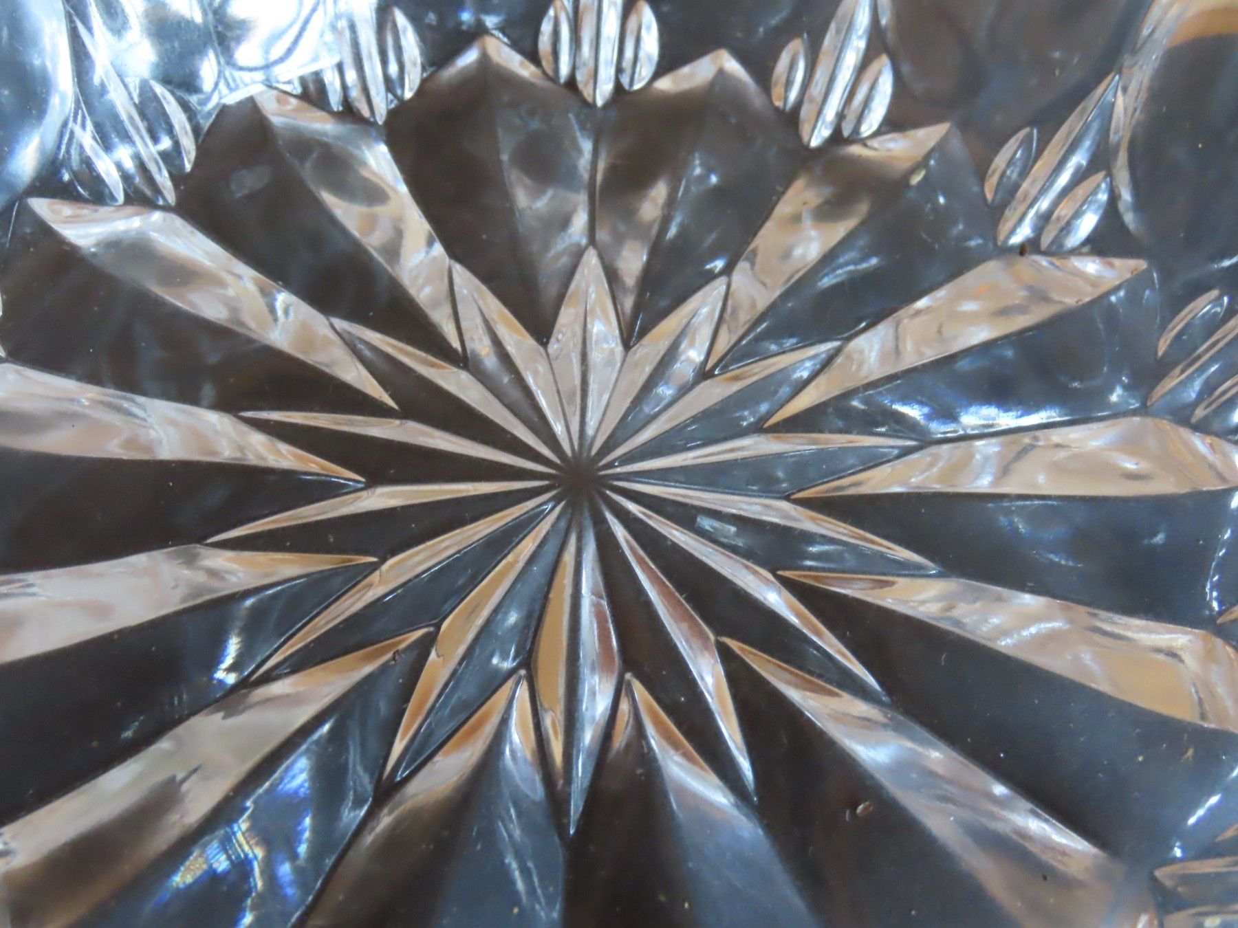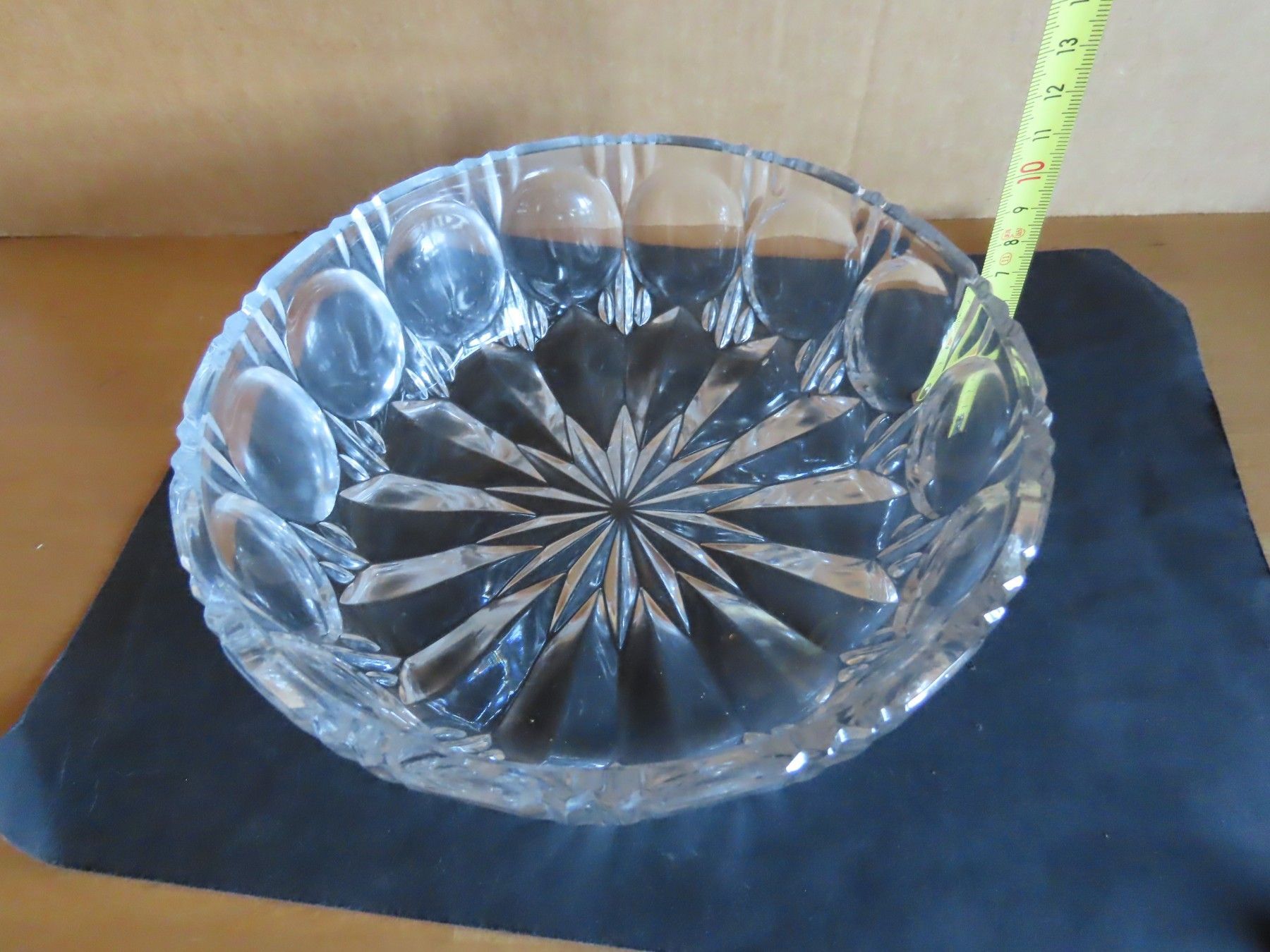 Maße: ca. 7,5 cm hoch und hat einen Durchmesser von ca. 21 cm ----immer die breiteste Stelle gemessen der Boden hat einen Durchmesser von ca. 16,5 cm Material: Glas ist leicht verschmutzt verstaubt,hat feine Kratzer, am oberen Rand eine winzige Absplitterung