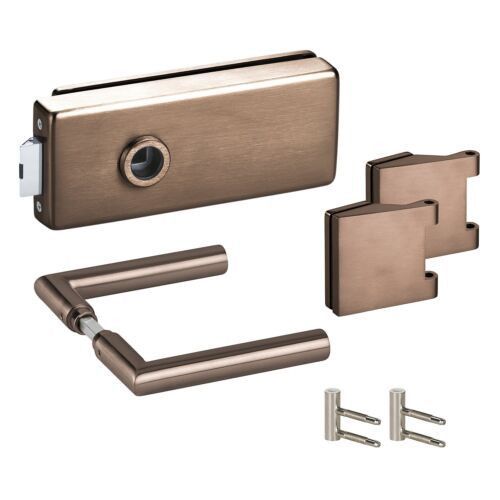 Glastürbeschlag Set Office/ Studio UV/ OL Bronze Glastürschloss + Bänder + Drücker
