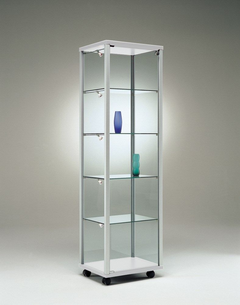 Glasvitrine Alu abschließbar Messevitrine mit Beleuchtung 50 cm Rollen Spiegel