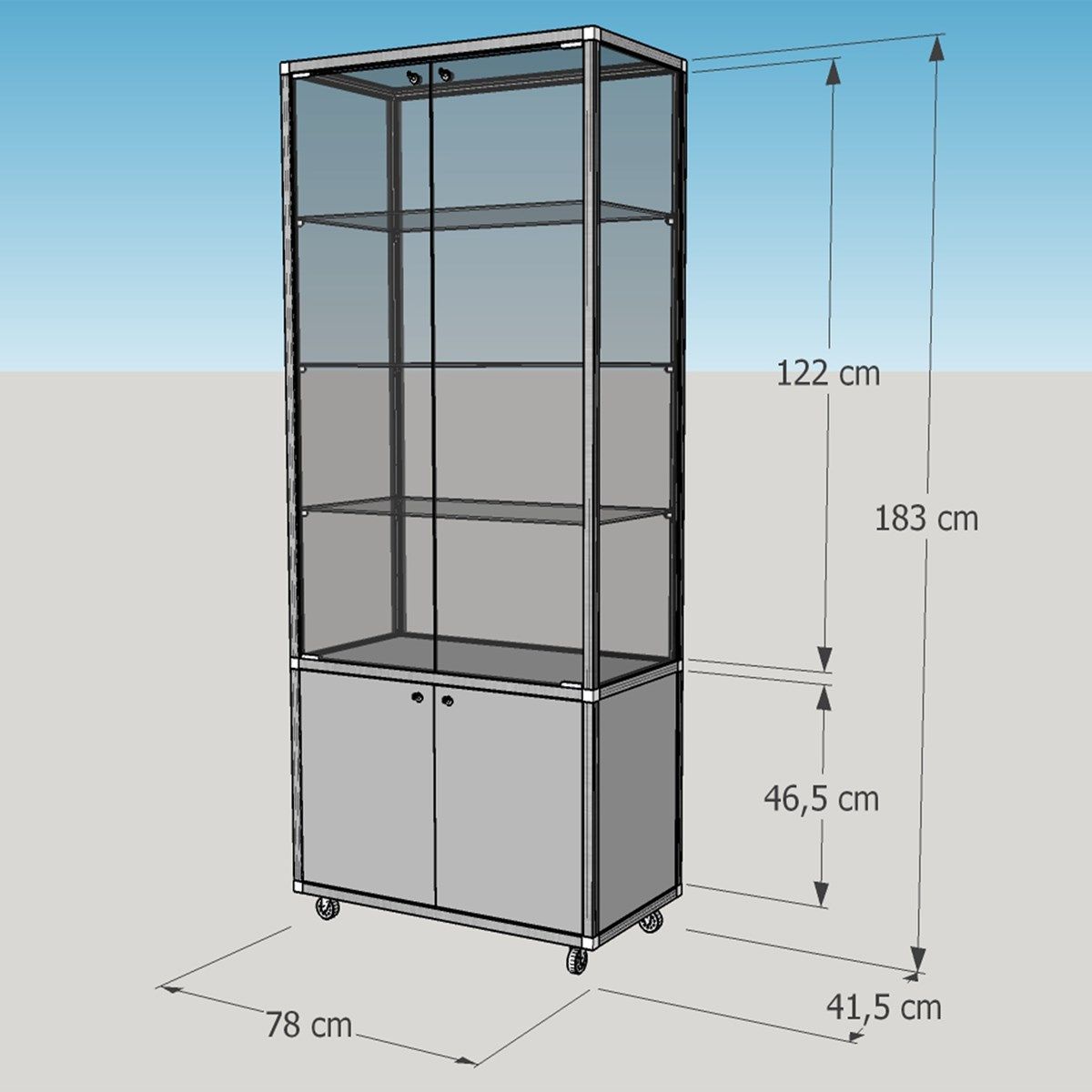 Glasvitrine Alu Unterschrank 80 cm Vitrinenschrank beleuchtet Rollen Schloss