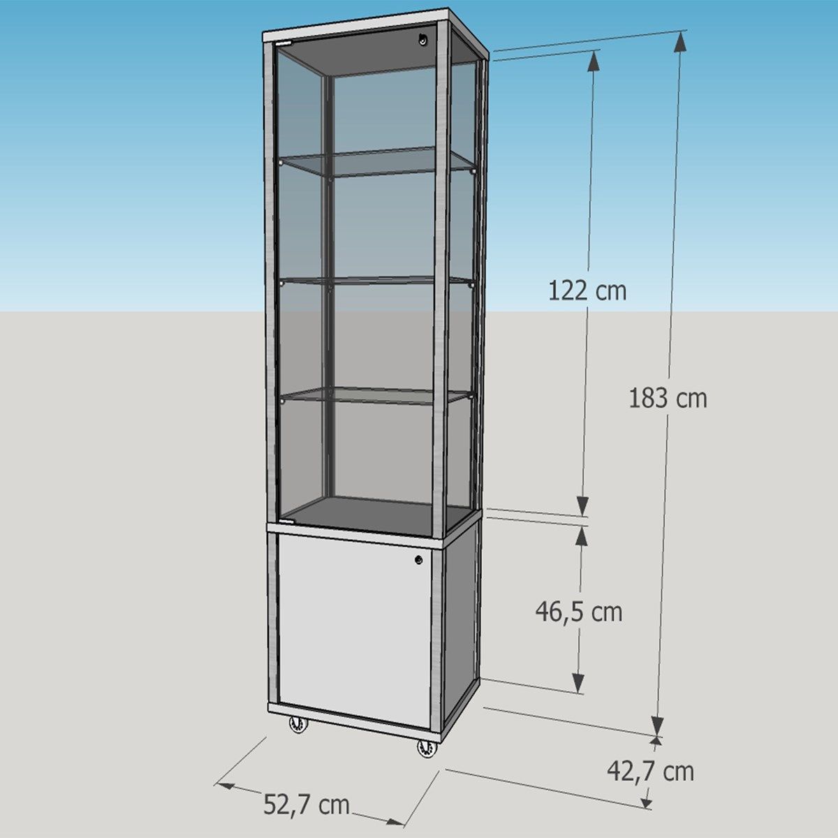 Glasvitrine beleuchtet QM abschließbar Messevitrine & Unterschrank 50 cm Rollen