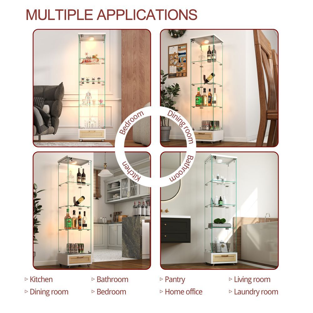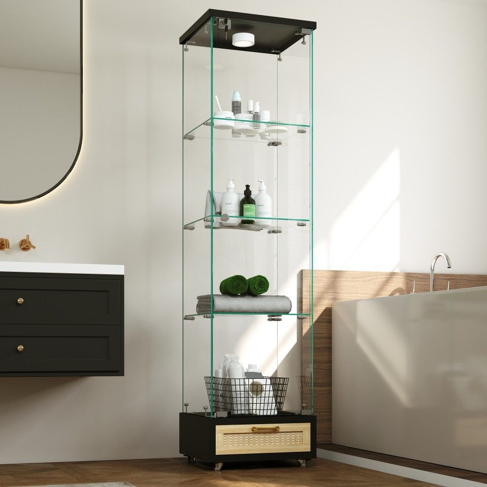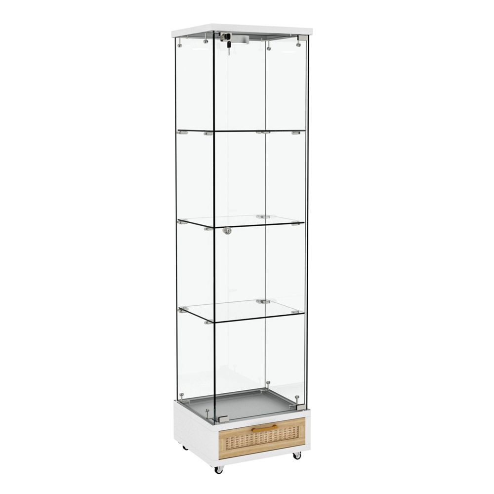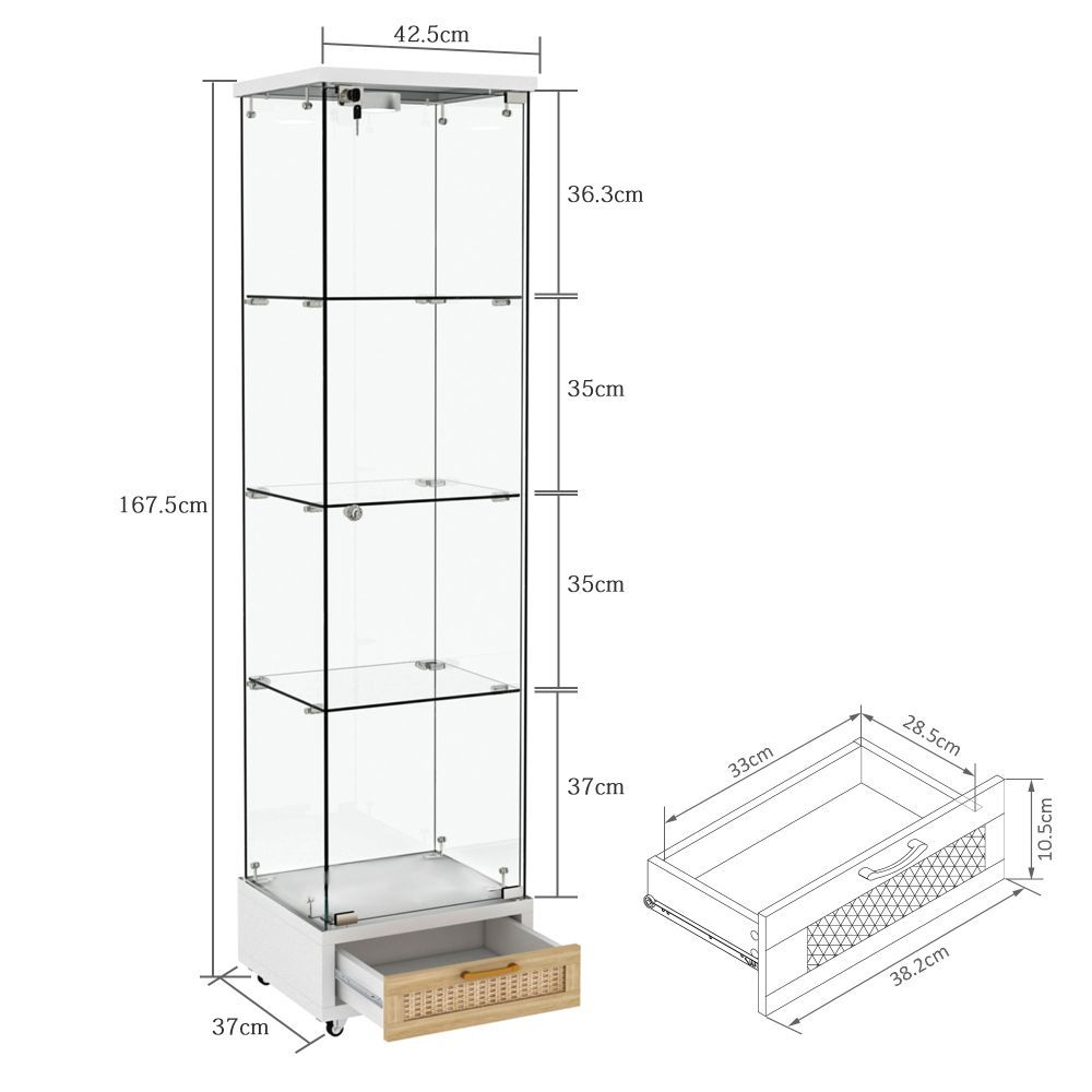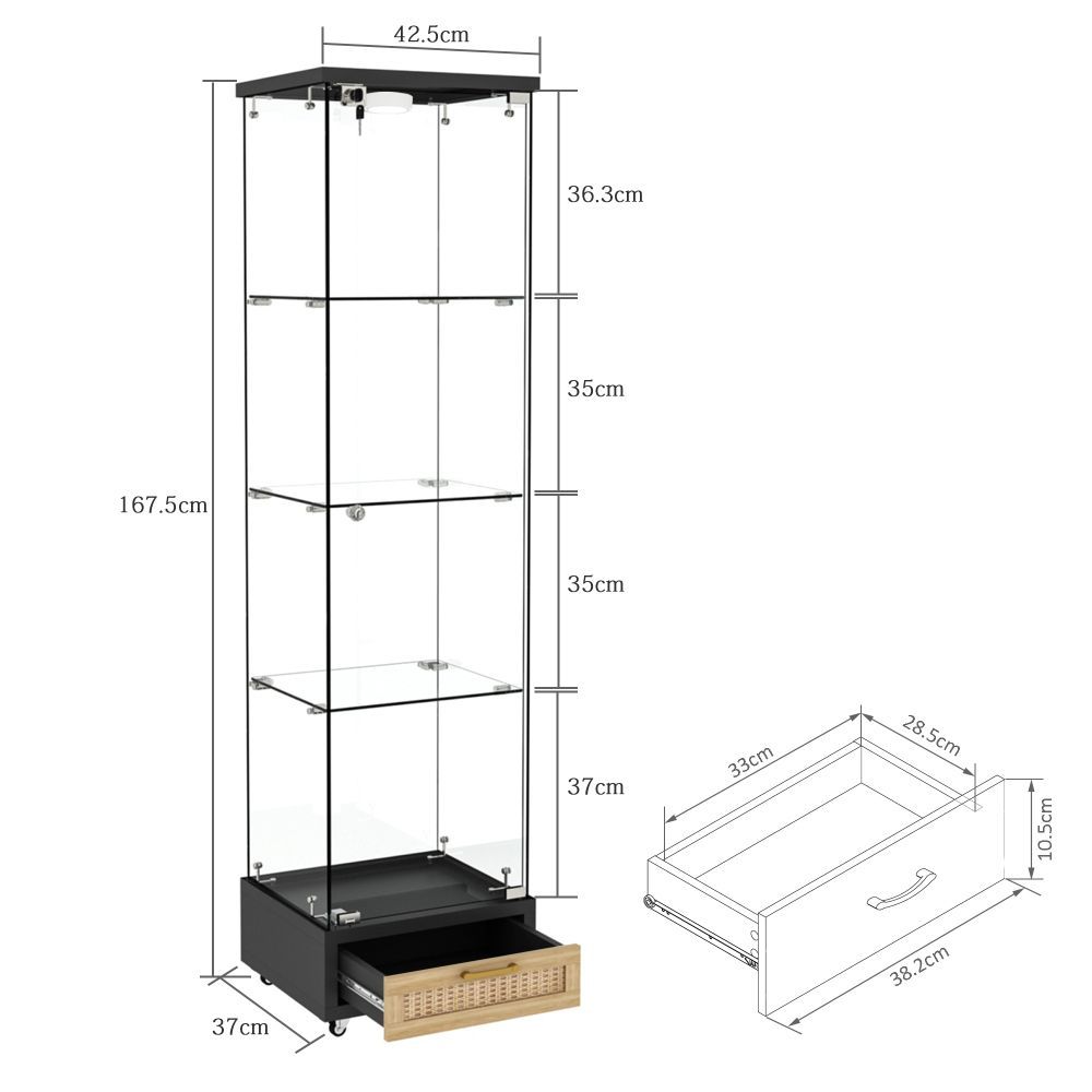 Glasvitrine mit LED, Schubladen, Bücherregal, Schrank, 4 Böden