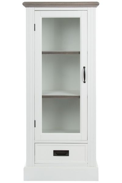 Glasvitrine Rita mit Schublade MDF Weiß&Holz