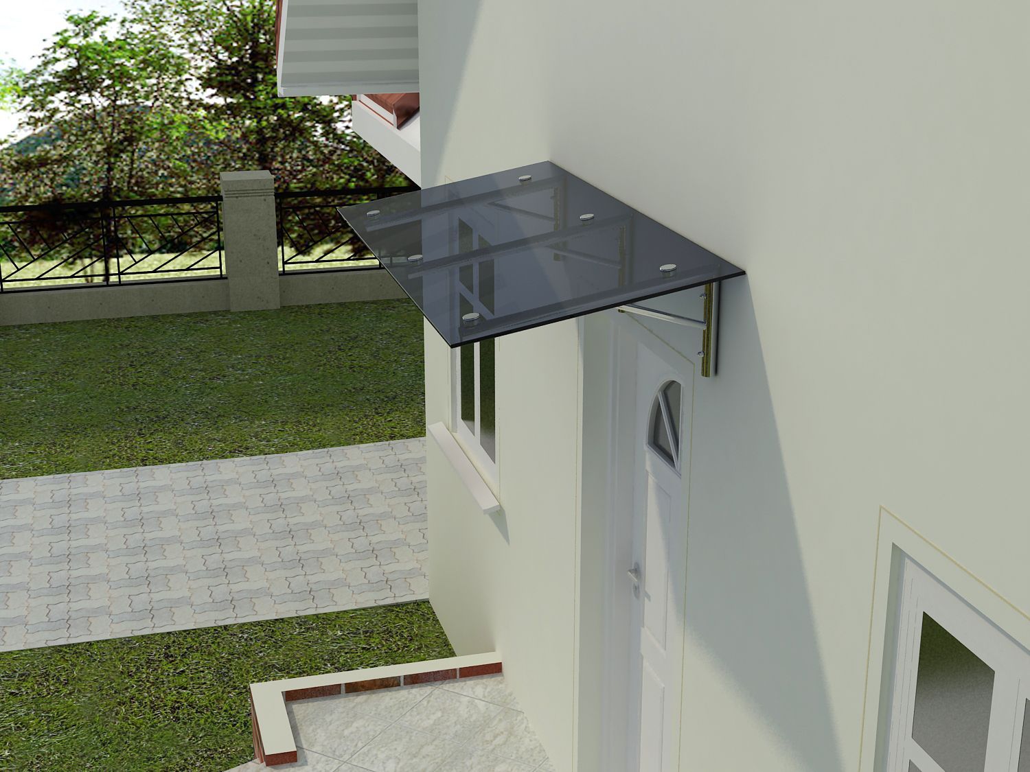 Glasvordach Edelstahl VSG Türvordach Glas Winkel Klar Glas V2A Haustür Milchglas