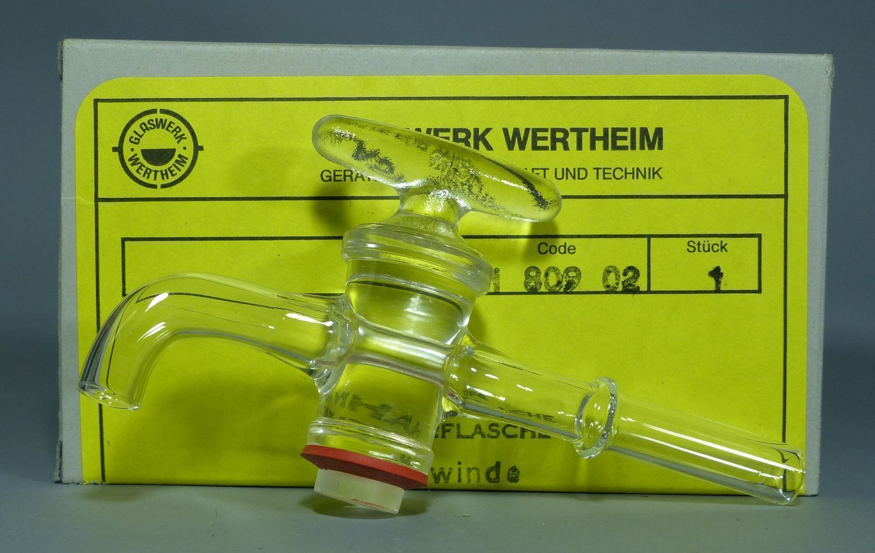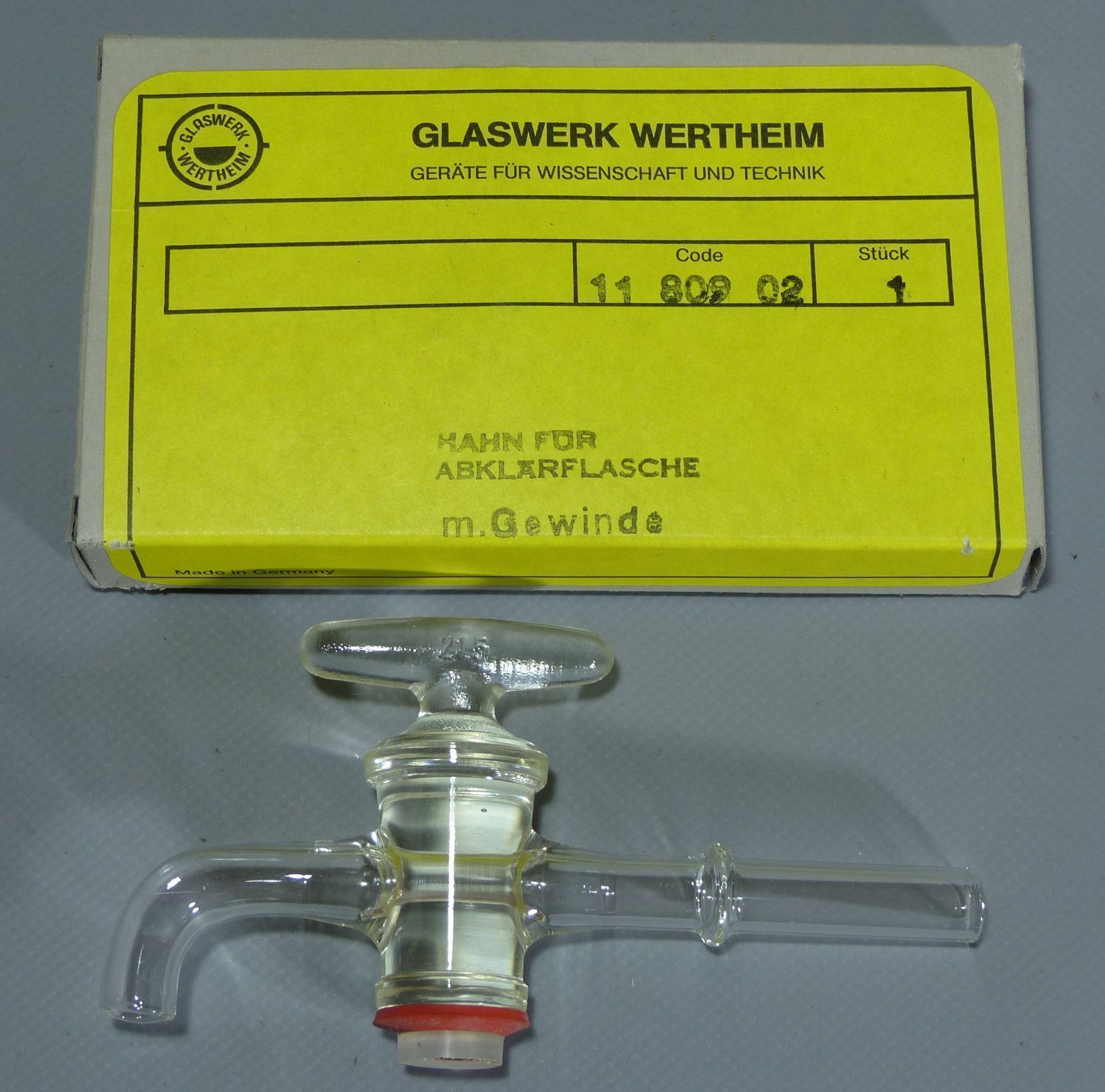 Glaswerk Wertheim 1180902 Glas Hahn für Abklärflasche m. Gewinde NEU OVP NOS