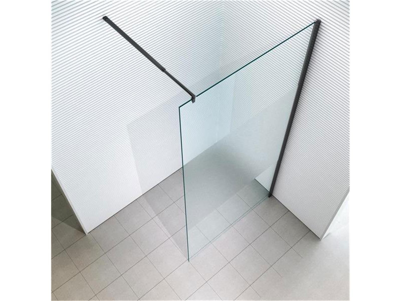 Glaszentrum Hagen 140x200cm "EVA-BK" Duschwand - Duschabtrennung Milchglas-Streife
