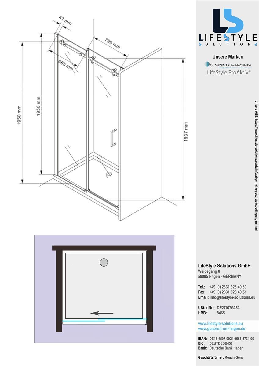 Glaszentrum Hagen - 150x195cm Nischentür Schiebetür Duschtür Nischendusche - ESG Glas