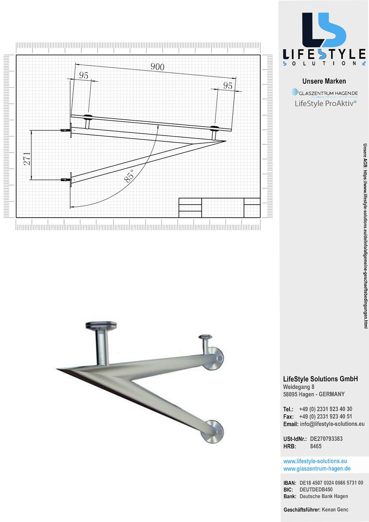 Glaszentrum Hagen 170x90 cm Glasvordach Klar RAL7016-V