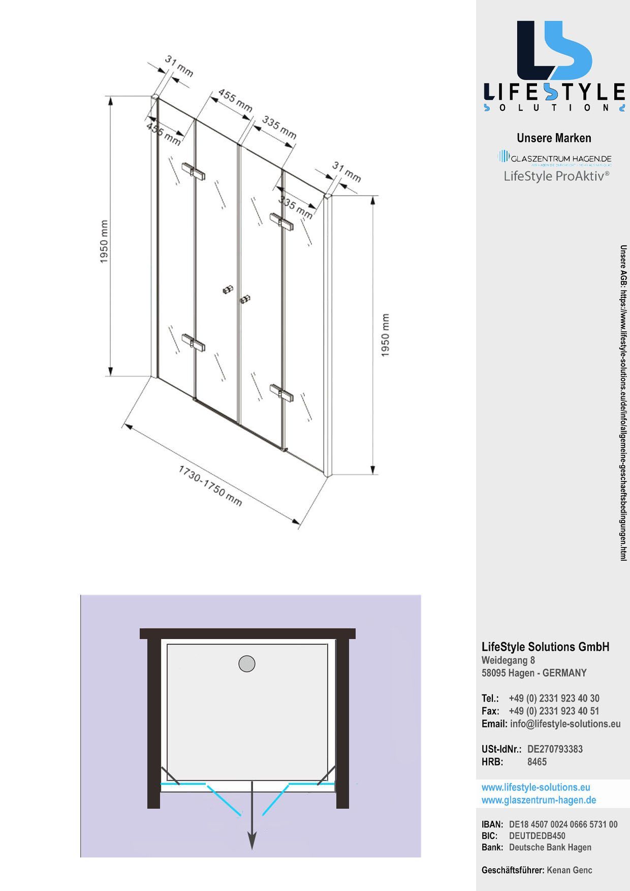 Glaszentrum Hagen - 175x195cm - Demeter Nischentür - 8mm - ohne Duschtasse