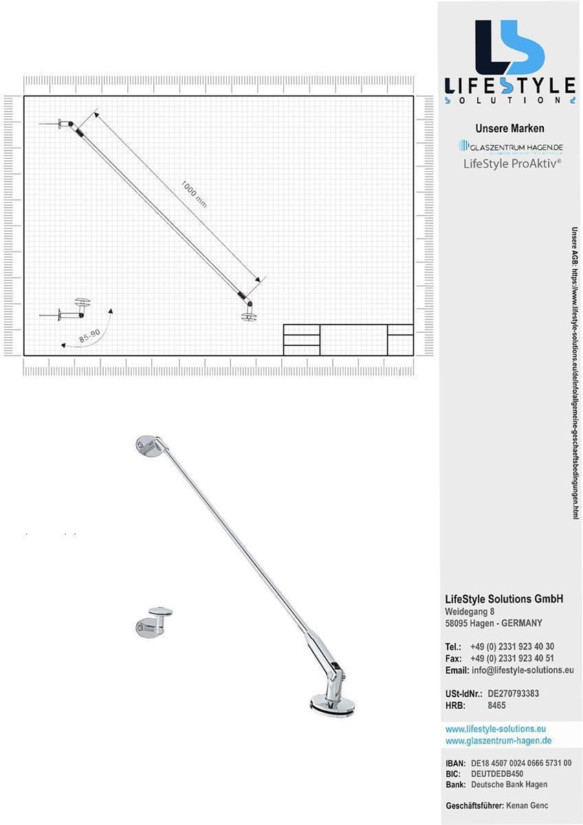 • Glaszentrum Hagen - Stabilisator Stange - Flex - 700-1200mm - für Duschwand