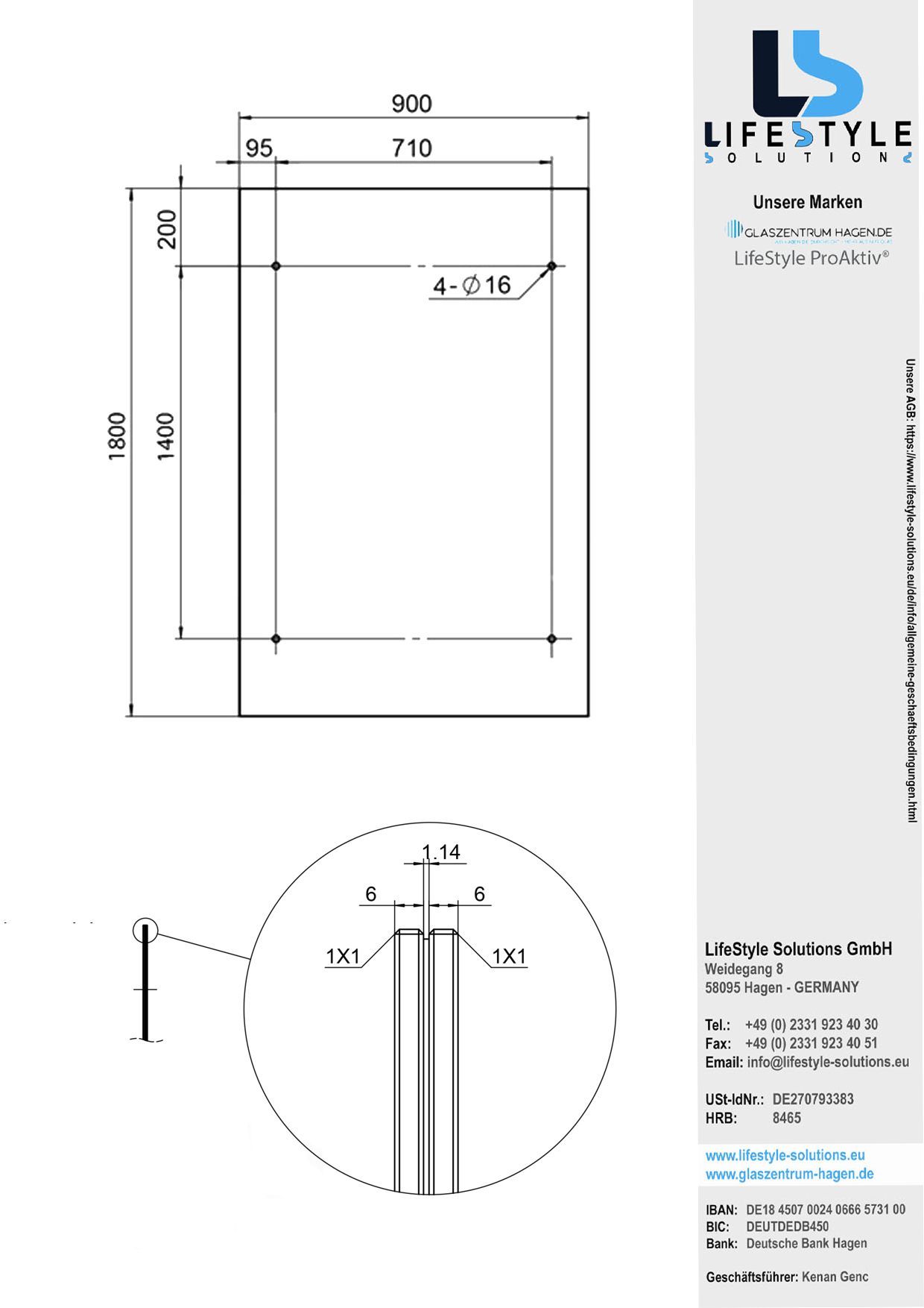 • Glaszentrum Hagen (WH) 110x200 cm Walk in Dusche