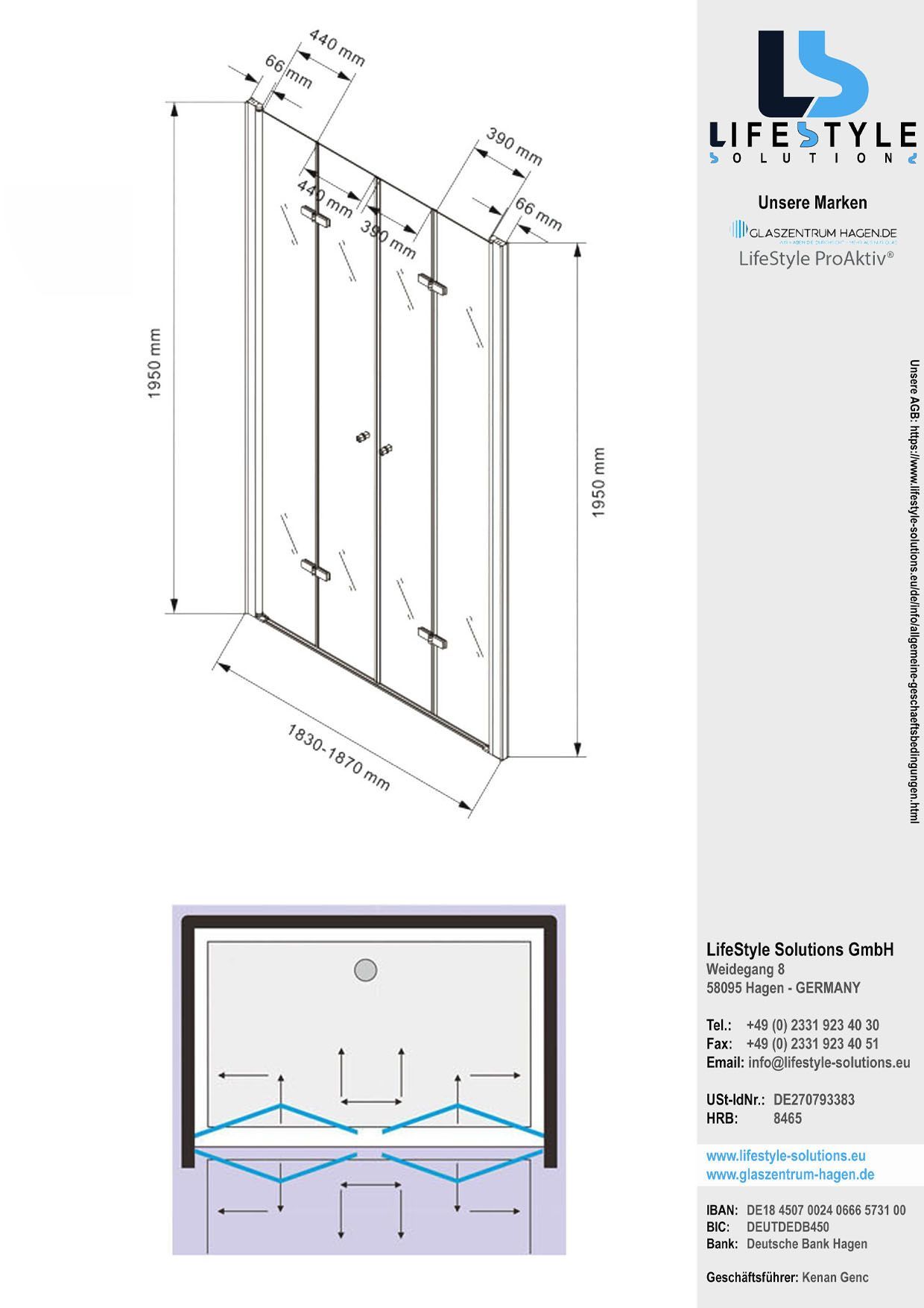 Glaszentrum Hagen 185x195 cm Nischentür Hera 8mm