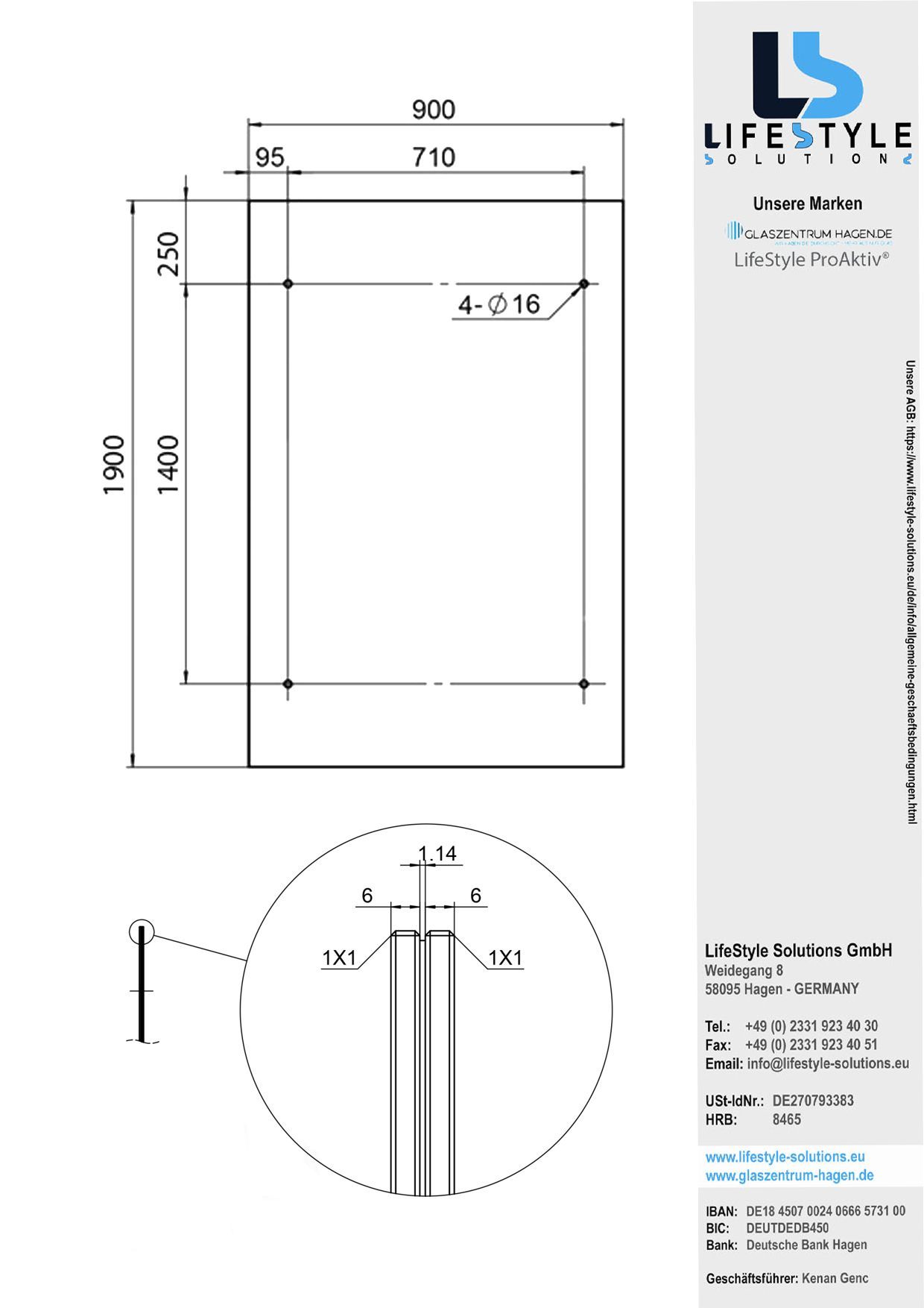 • Glaszentrum Hagen 120x140 cm Badewannenaufsatz
