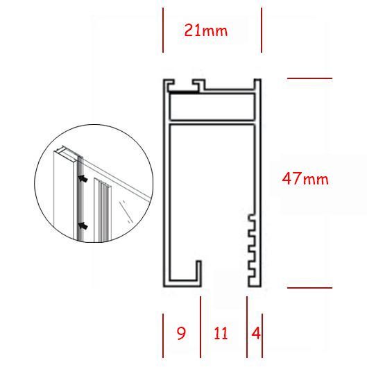 Glaszentrum Hagen - 2000x47x21 mm Aluminiumprofil - Wandprofil - Bodenprofil - Schwar